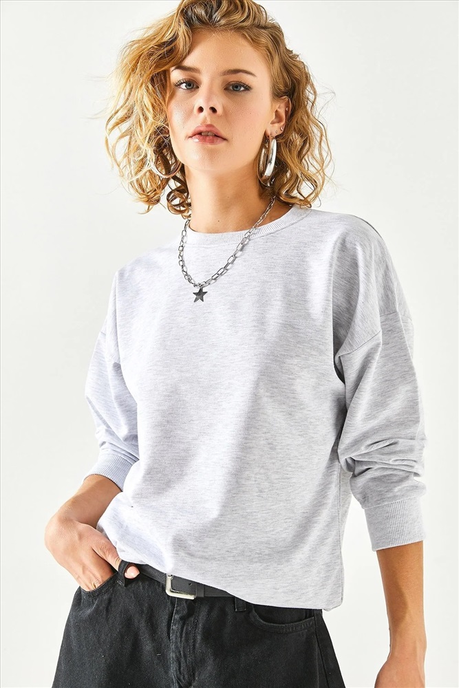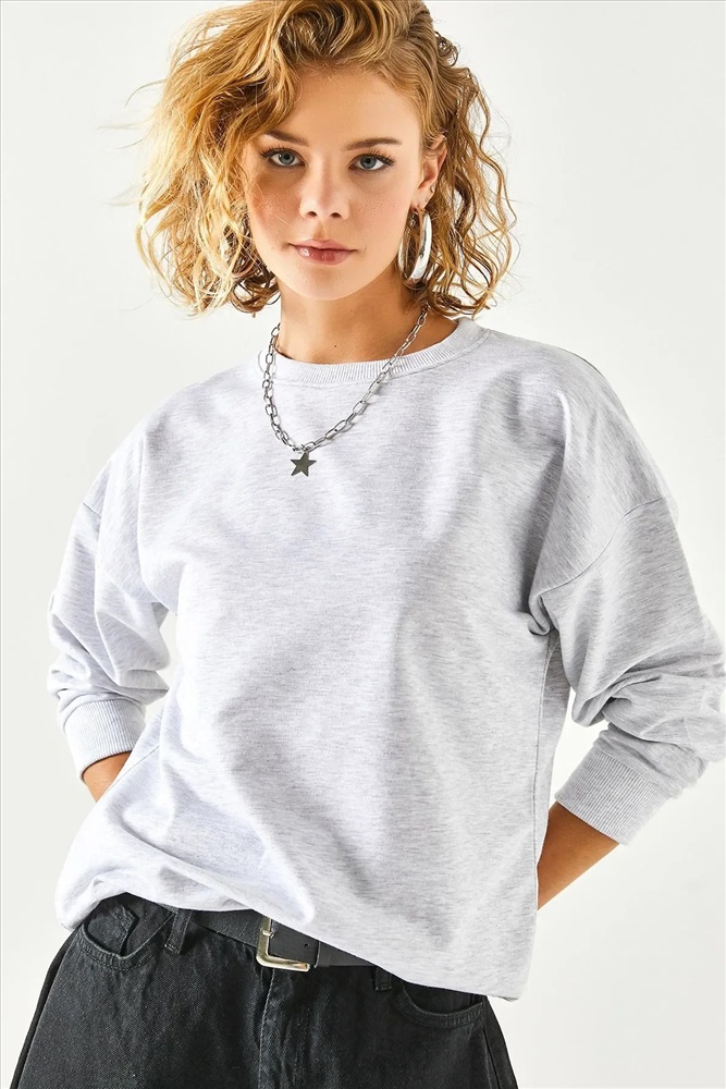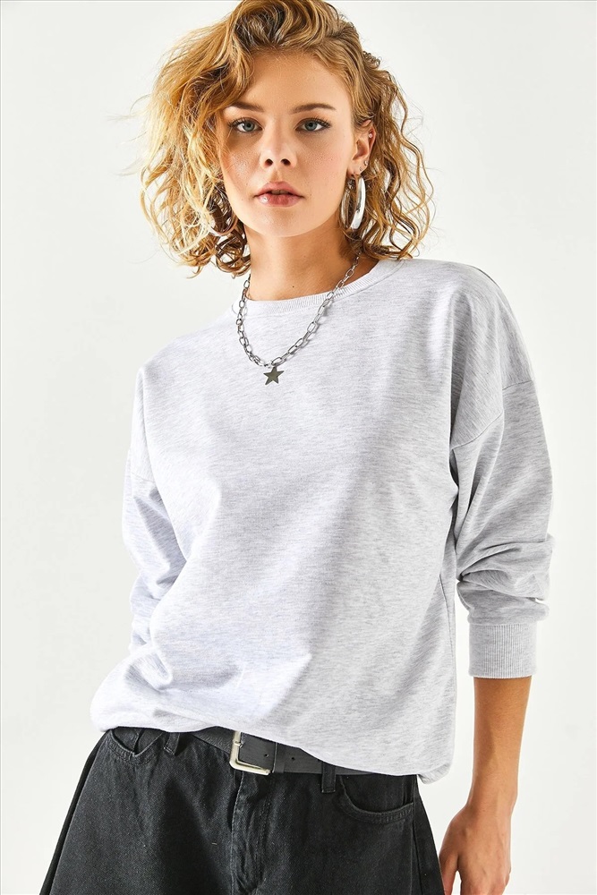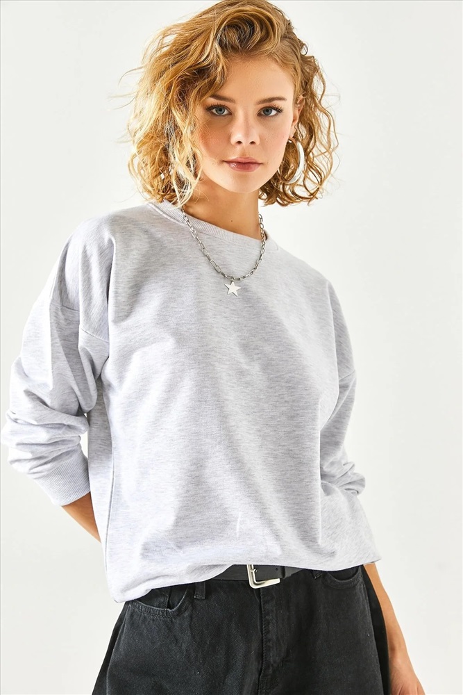 Olalook Kadın Gri Melanj Basic Yumuşak Dokulu Salaş Sweatshirt SWT-19000457