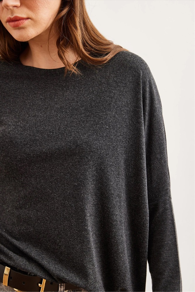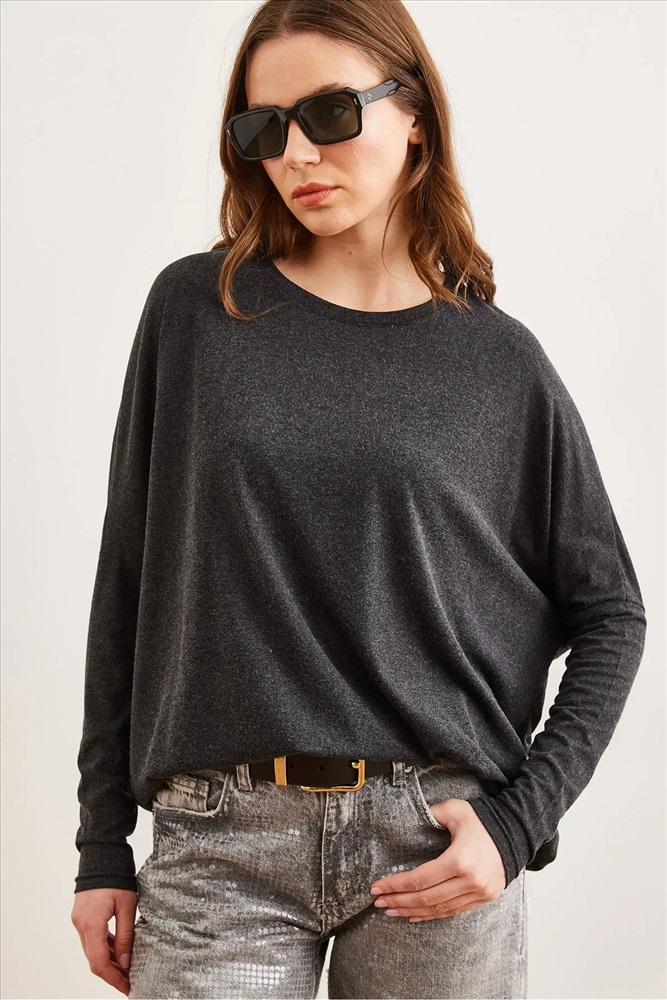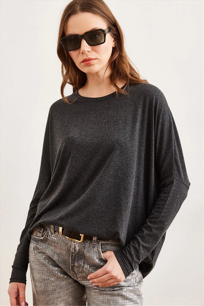 Olalook Kadın Siyah Bisiklet Yaka Yarasa Yün Viskon Bluz BLZ-19002801