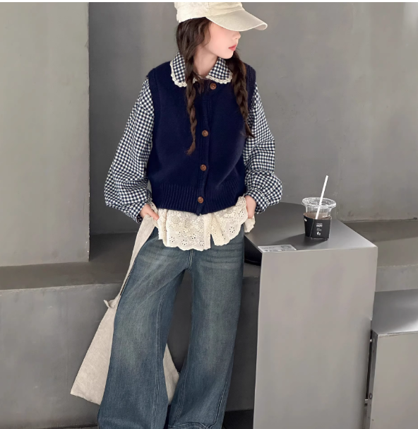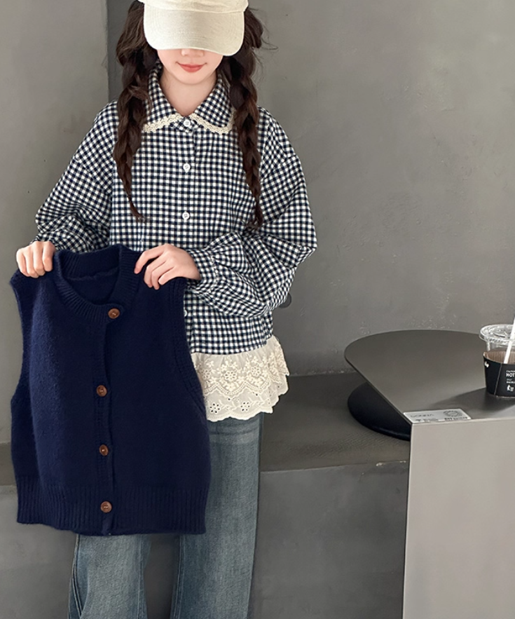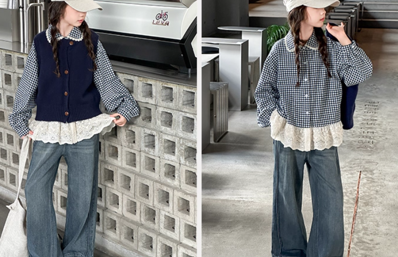 Рубашка и жилетка. Осенний костюм для девочек 2025 Хлопок 100%
