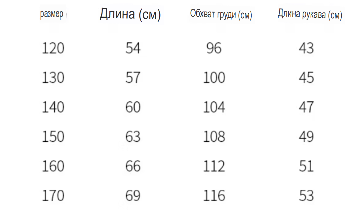 Размер: 120, 130, 140, 150, 160, 170
