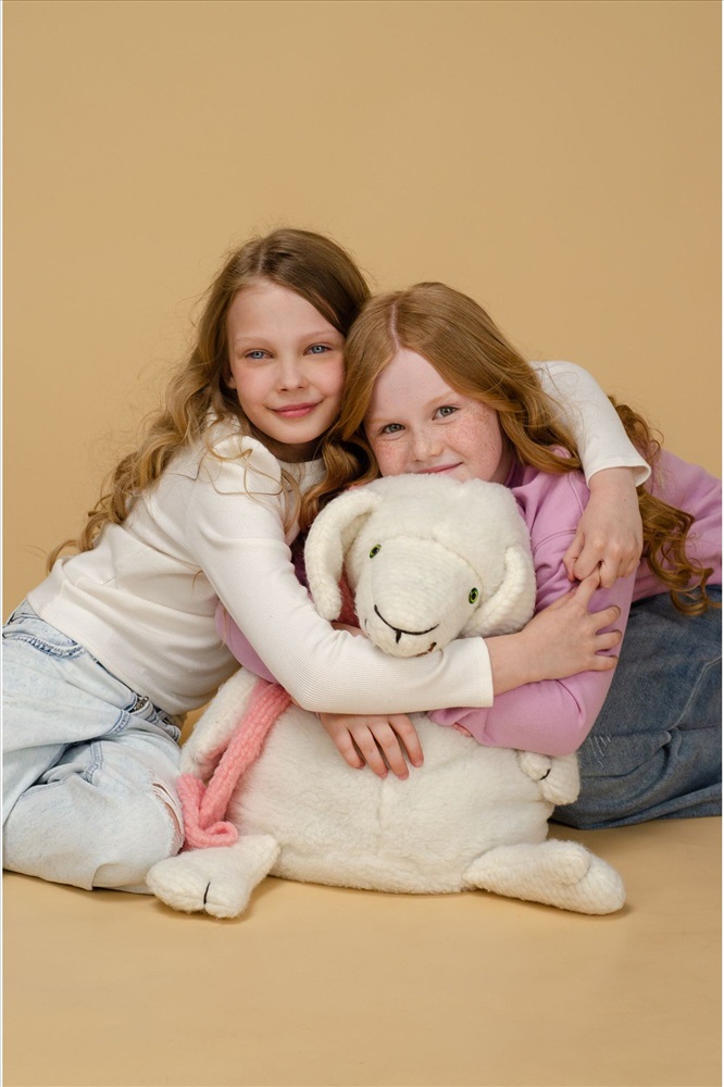 Новинка!!!, Мягкая игрушка для детей овечка Плюша из натуральной овечьей шерсти., Наполнитель холлофайбер. Габариты: вес 900гр, В50 Ш30 Г40 см, Овечка Плюша является символом новой коллекции ПЛЮША. Покупая продукцию WOOLLAMB с этой эмблемой, ты делаешь вклад в благотворительную акцию "ДЕТИ ДЕТЯМ" (подробнее см. Новости) Мы направим процент от продаж в благотворительные фонды, которые помогают детям с различными заболеваниями., Будь яркой, модной, оригинальной с компанией WOOLLAMB!