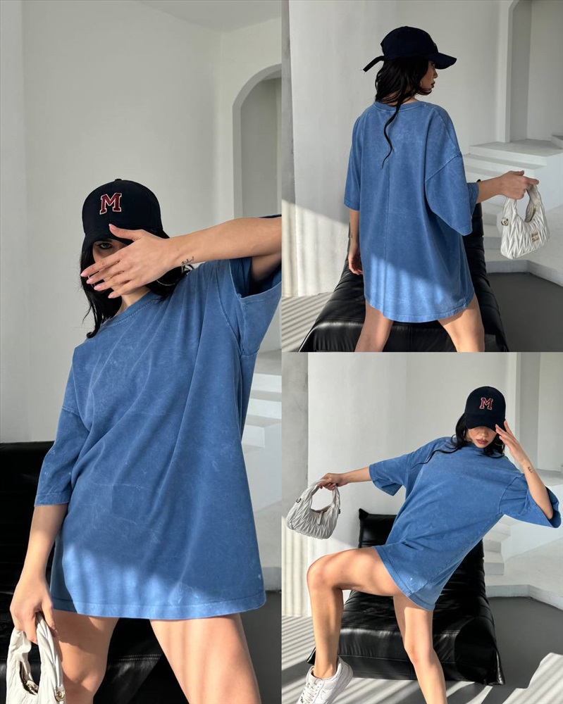 Оверсайз футболка с принтом и эффектом стирки, 100% хлопок