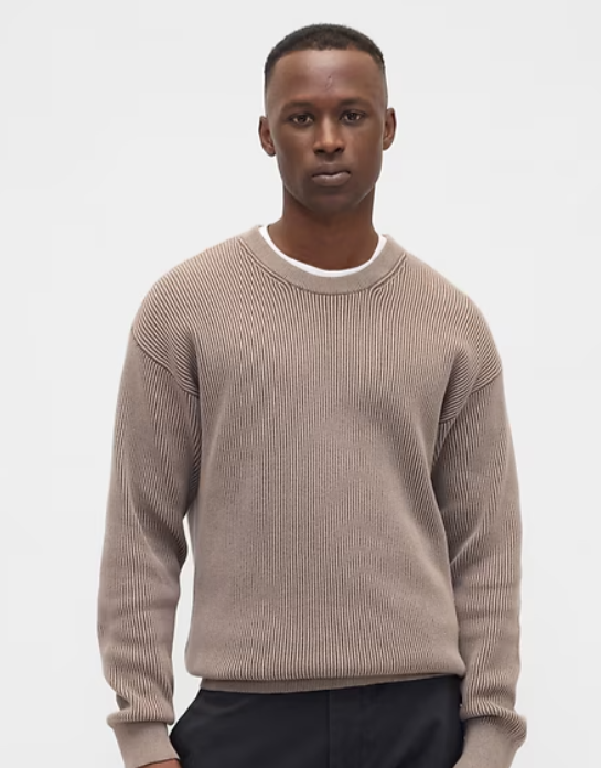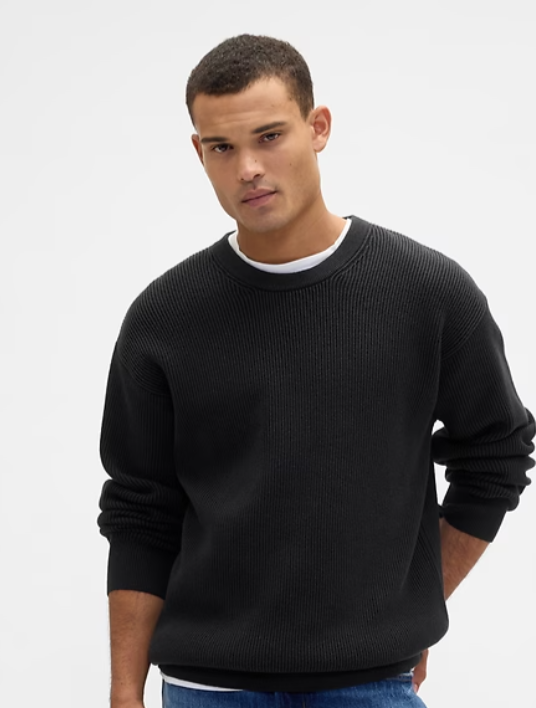 Oversized Fisherman-Stitch Crewneck Sweater