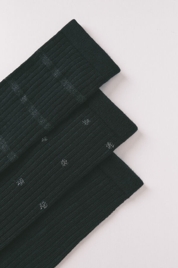 Pack de 3 calcetines largos, confeccionados con algodón, en color negro con diferentes detalles de brillantes. Deja que se vean en tus looks más “cool”.