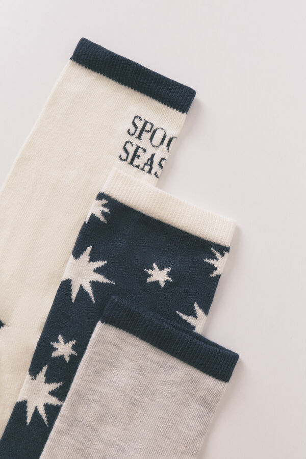 Pack de 3 calcetines largos con estampado "spooky season", fabricados en algodón suave y elástico. Diseñado para ofrecer comodidad y estilo durante tus actividades diarias.