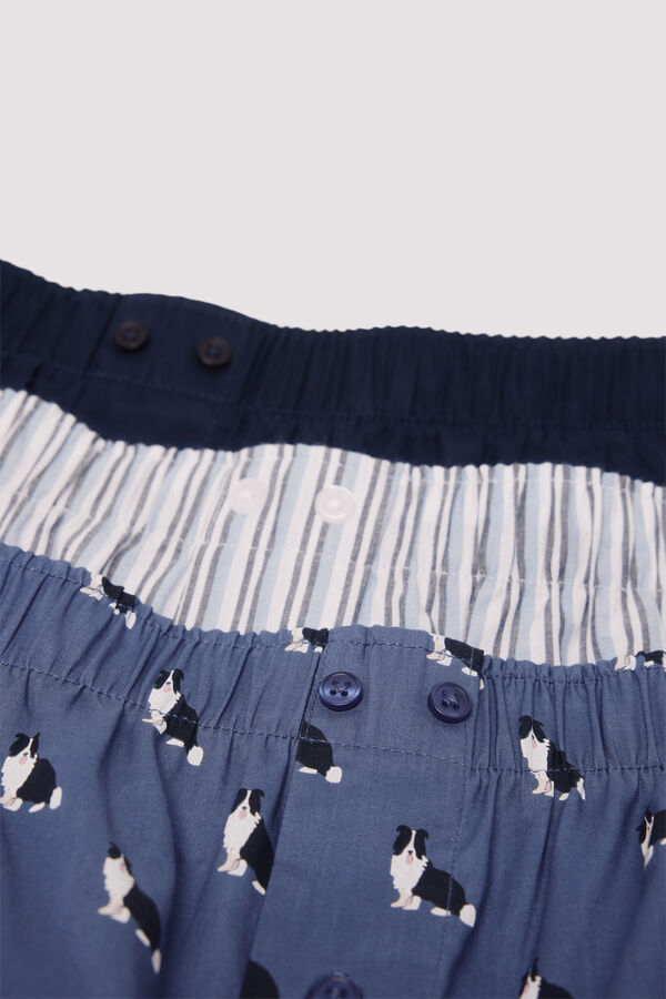 Pack 3 boxers variados de hombre de tela en algodón con cinturilla revestida en punto suave. Tonos azules.