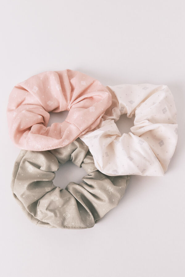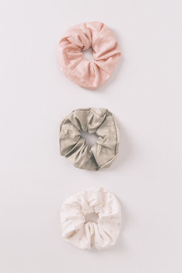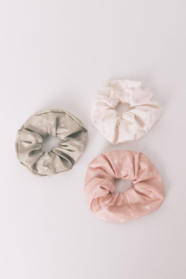Pack de tres coleteros en calidad de algodón, estampados con motivos y en colores crudos y rosas. Ideal para complementar tus looks diarios.