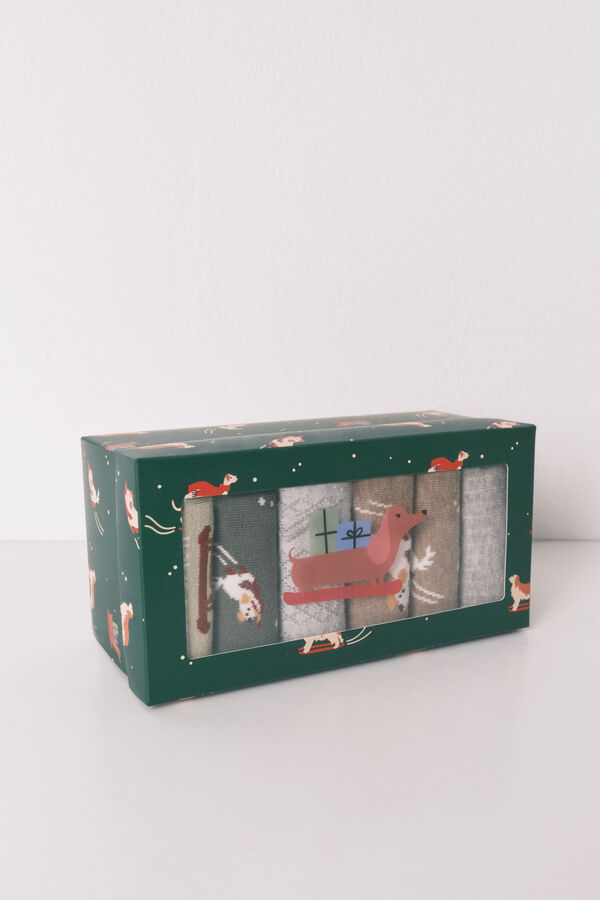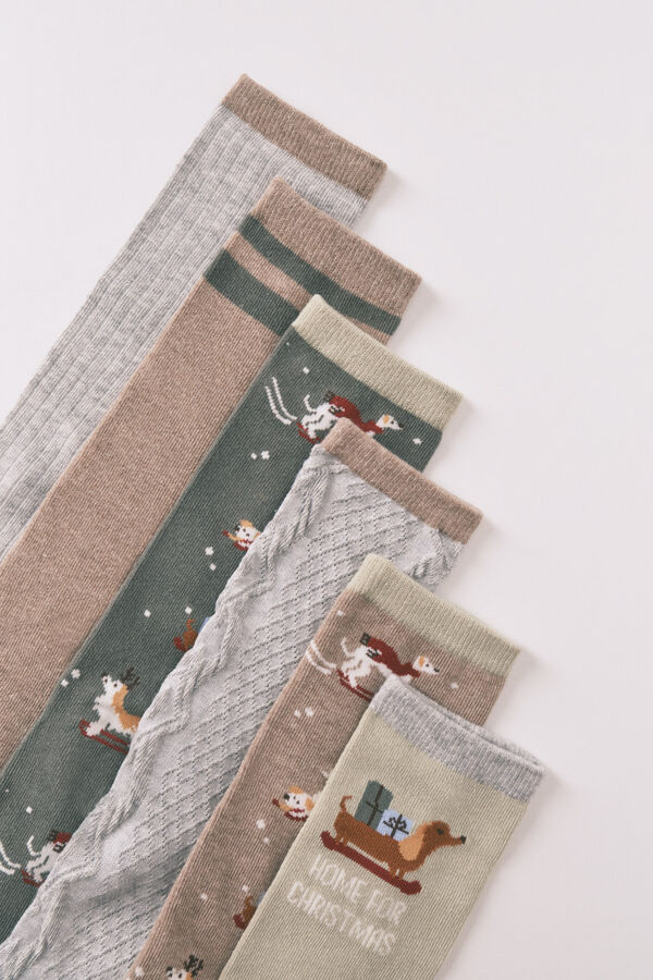 Pack de 6 calcetines largos, confeccionados con algodón, con diferentes estampados de perros navideños y texturas. Deja que se vean en tus looks más “cool”.