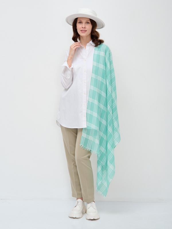 Состав: Вискоза, Хлопок, Модал Размер: 90 x 180 cм Состав: 45% хлопок, 30% вискоза, 25% модал Цвет: Бирюзовый Сезон: Демисезон, Лето, Осень, Весна Большой, красивый палантин с необычной выработкой по всему полотну изделия. Края изделия аккуратно закрыты строчкой. Только ручная стирка. Комментарии к товару