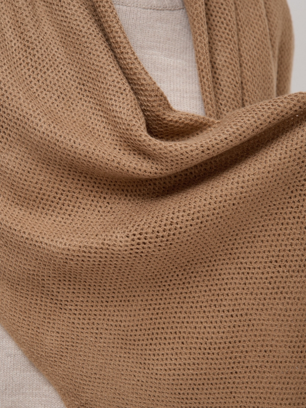 Размер: 180 x 70 см Состав: Шерсть 45% Акрил 55% Цвет: Бежевый Принт: Однотонный Большой, красивый вязаный палантин. За счет неплотной вязки может легко изменить свой размер. Изделие украшено длинной бахромой. Только ручная стирка. Сушить в горизонтальном, расправленном виде. Комментарии к товару
