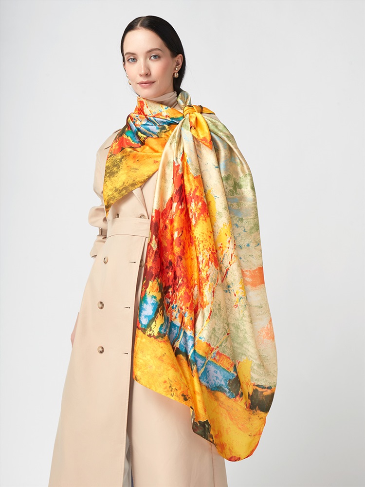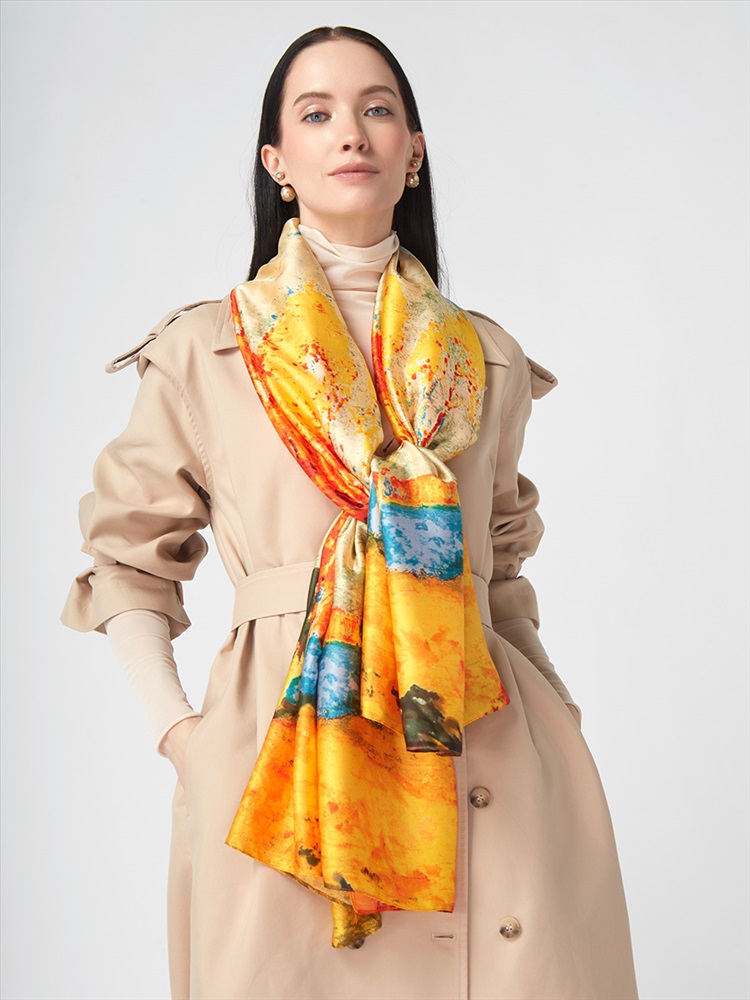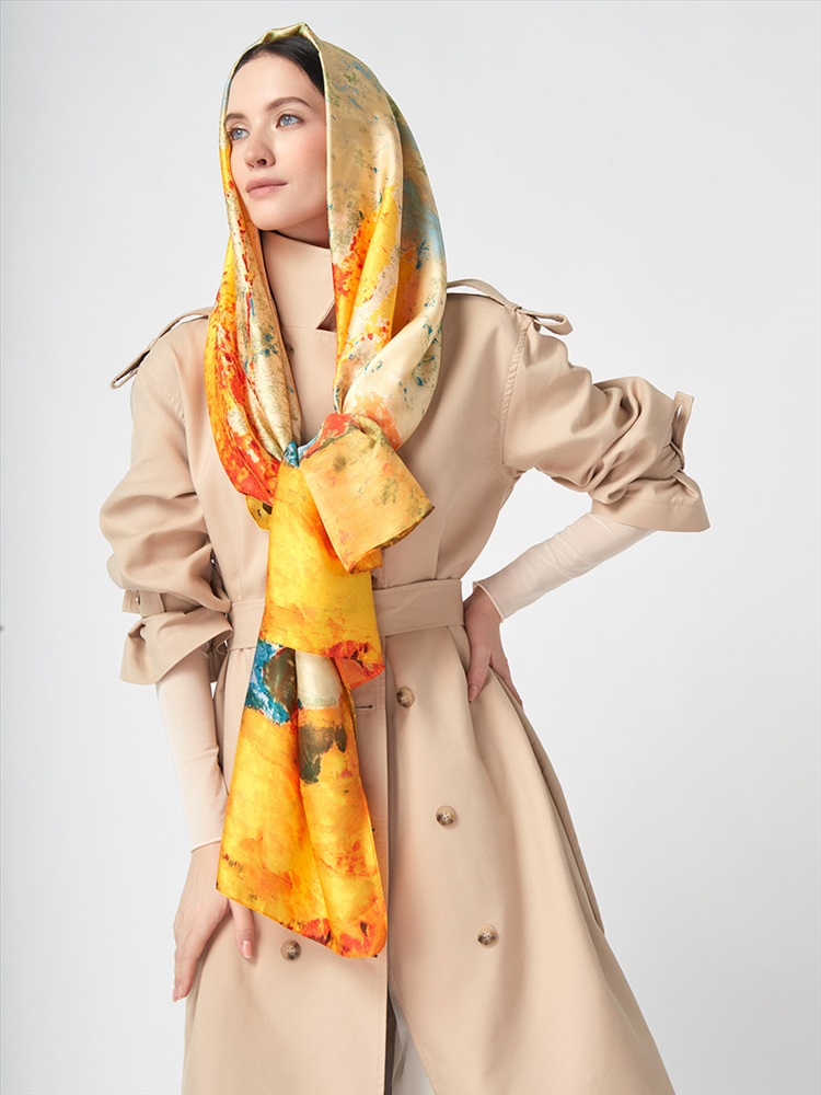 Цвет: Бирюзовый, Желтый, Золотой, Оранжевый Состав: 45% полиэстер, 35% вискоза, 20% шелк Состав: Вискоза, Полиэстер, Шелк Размер: 90 х 180 см Принт: Абстракция Сезон: Осень, Весна Большой, мягкий, тонкий и очень нежный палантин с рисунком. Только ручная стирка. Комментарии к товару