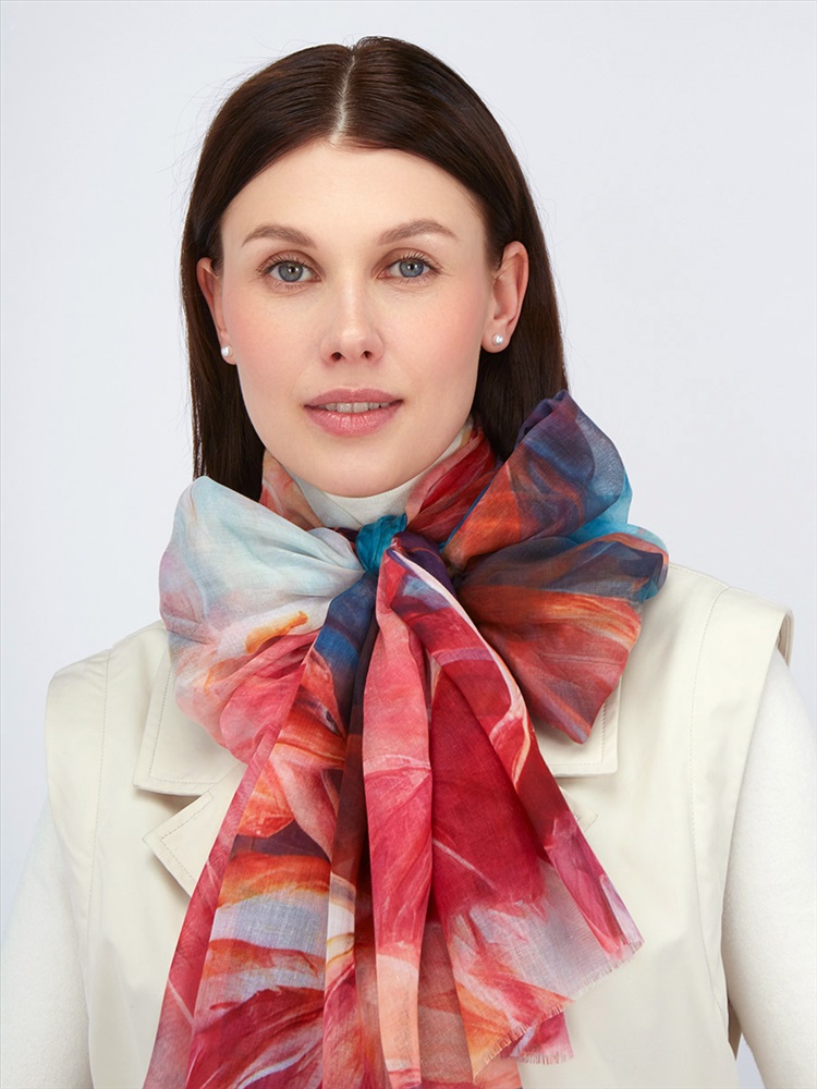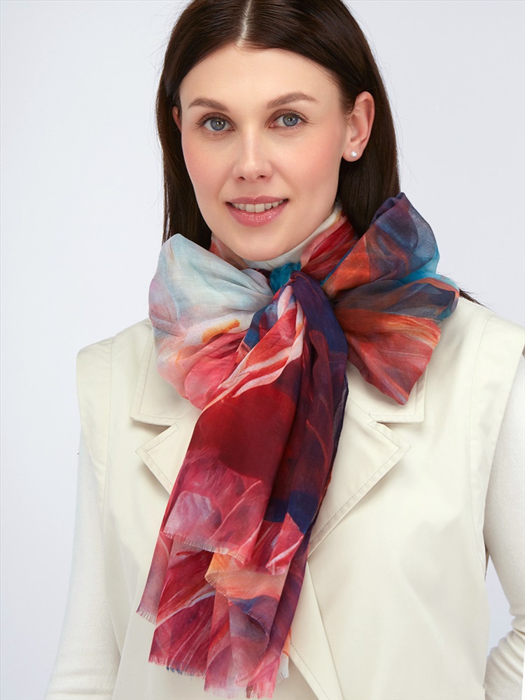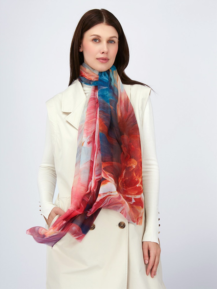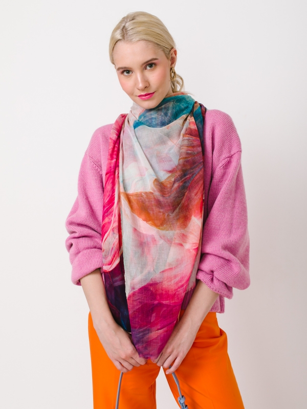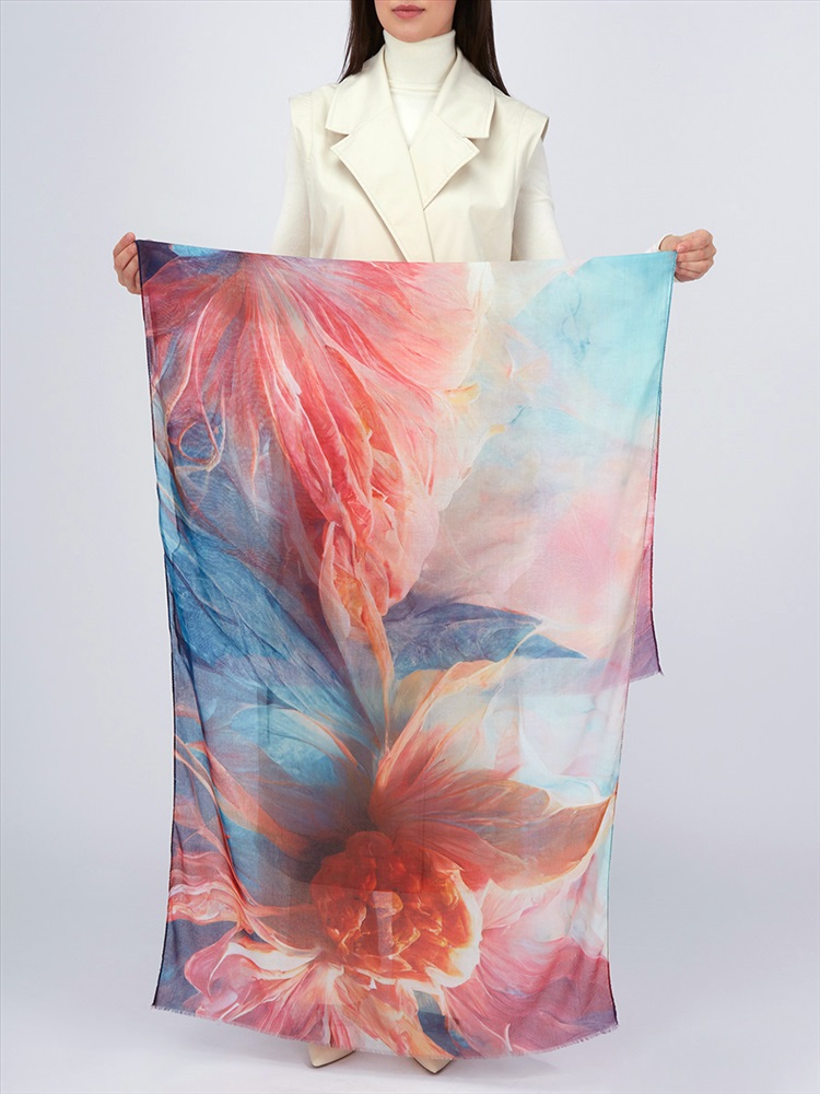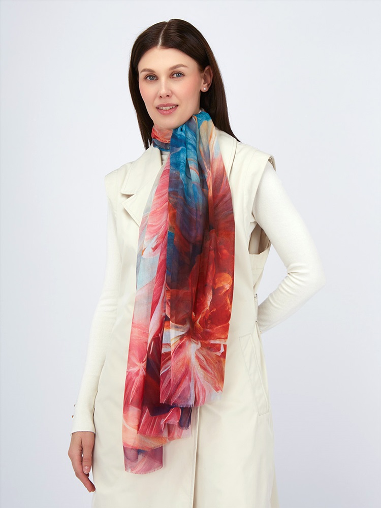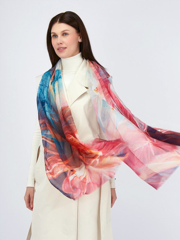 Цвет: Коралловый, Красный, Малиновый, Оранжевый, Розовый, Сливочный, Синий, Терракотовый, Фуксия, Шампань Состав: 45% полиэстер, 35% вискоза, 20% шелк Состав: Вискоза, Полиэстер, Шелк Размер: 75 х 180 см Принт: Абстракция, Цветочный Большой, мягкий, тонкий и очень нежный палантин с рисунком в стиле арт-деко. Только ручная стирка. Комментарии к товару