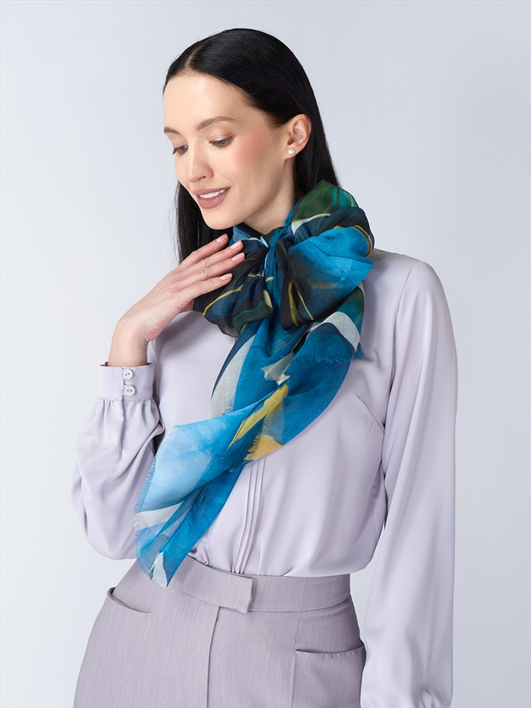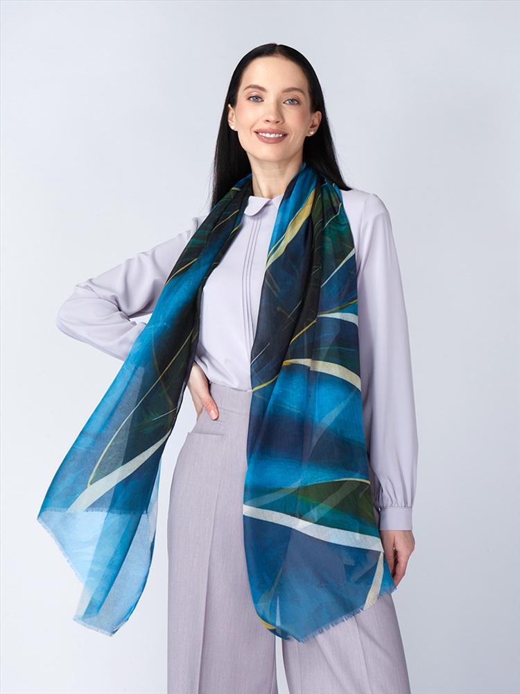 Цвет: Разноцветный Состав: 45% полиэстер, 35% вискоза, 20% шелк Состав: Вискоза, Полиэстер, Шелк Размер: 75 х 180 см Принт: Абстракция, Витраж, Орнаментальный Большой, мягкий, тонкий и очень нежный палантин с рисунком в стиле арт-деко. Только ручная стирка. Комментарии к товару