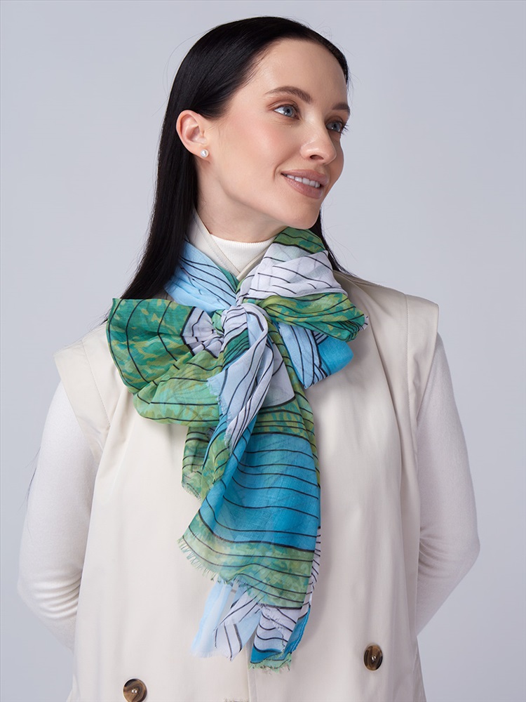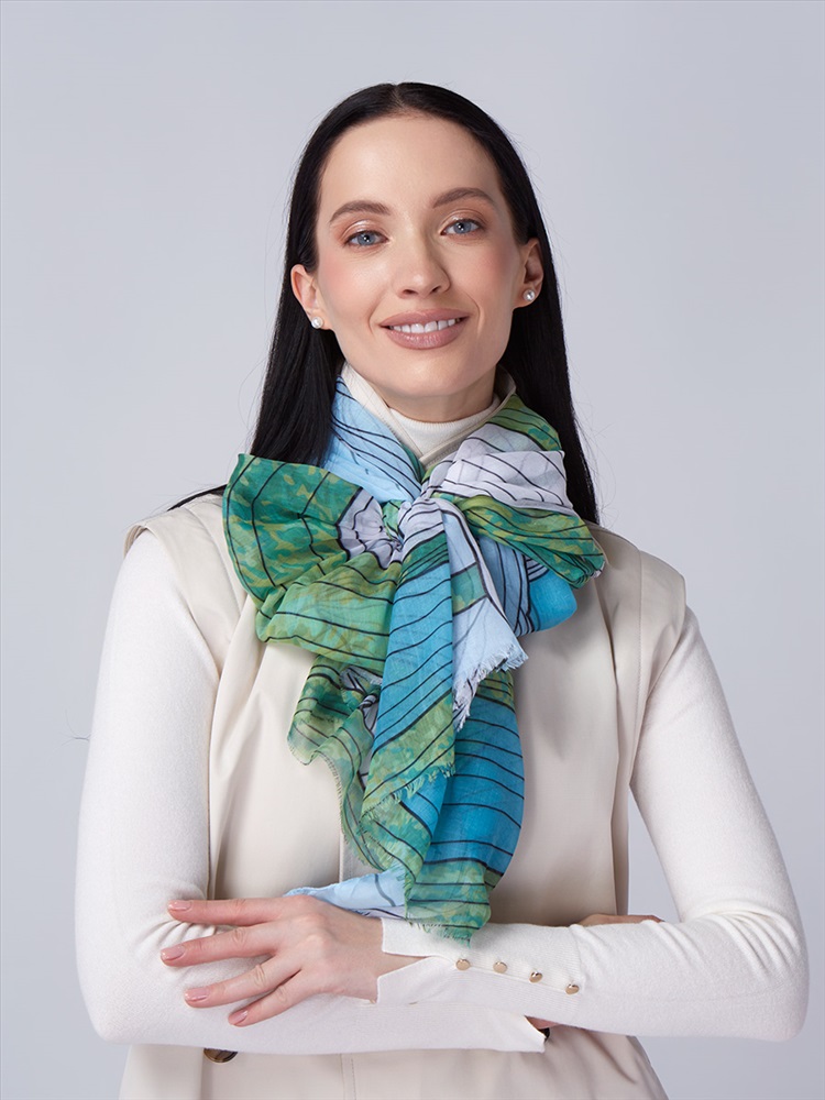 Большой, мягкий, тонкий и очень нежный палантин с рисунком в стиле арт-деко. Только ручная стирка.