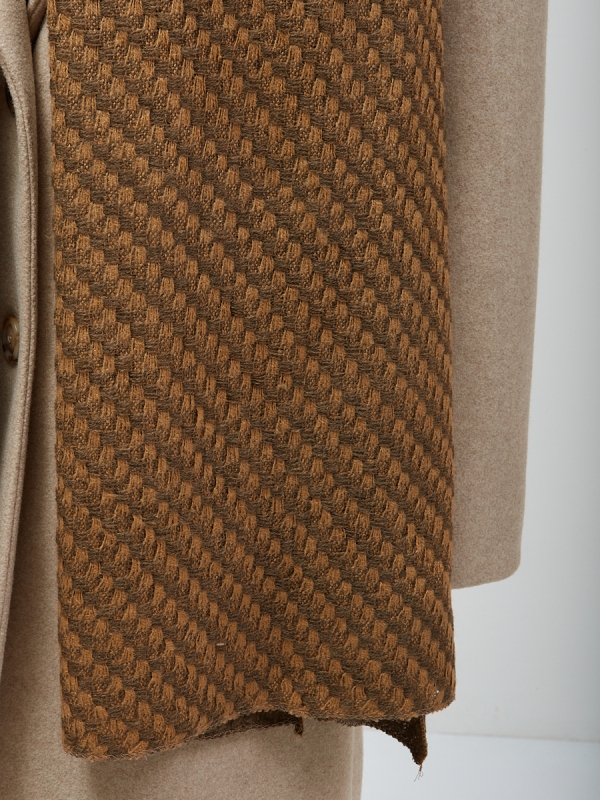 Тонкий, мягкий двусторонний палантин из трикотажного полотна неплотной вязки. По всему периметру изделие украшено бахромой. Изнаночная сторона зеркальное отражение лицевой. Только ручная стирка.