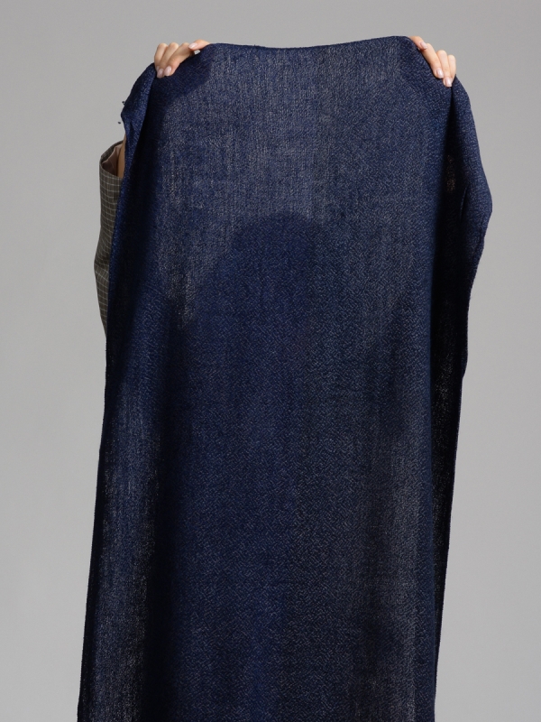 Тонкий мягкий палантин темно-синего, глубокого цвета, из шерсти из трикотажного полотна неплотной вязки.