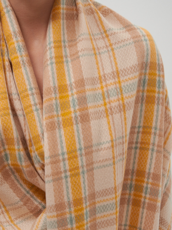 Большой, мягкий, теплый двусторонний палантин с рисунком в стиле арт-деко. Края изделия украшены кистями. Только ручная стирка.