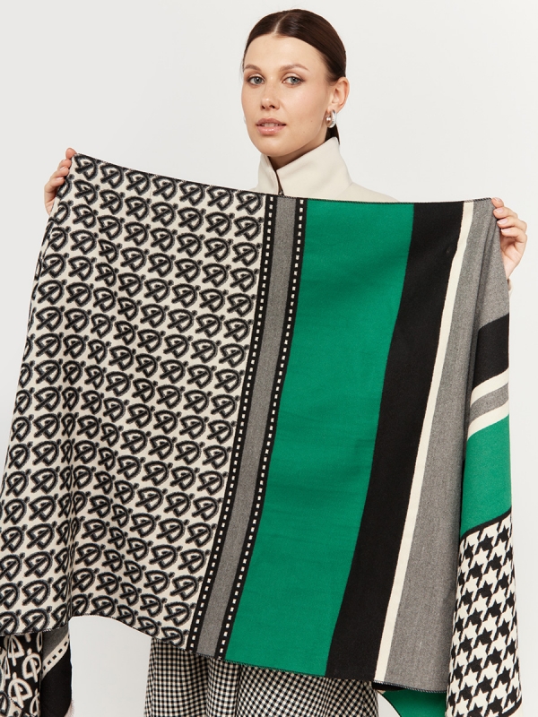 Большой, мягкий, теплый двусторонний палантин с принтом. Края изделия украшены кистями. Только ручная стирка.
