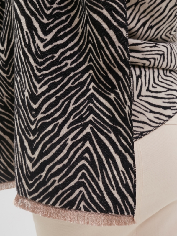 Большой, мягкий, теплый двусторонний палантин с принтом. Края изделия украшены кистями. Только ручная стирка.