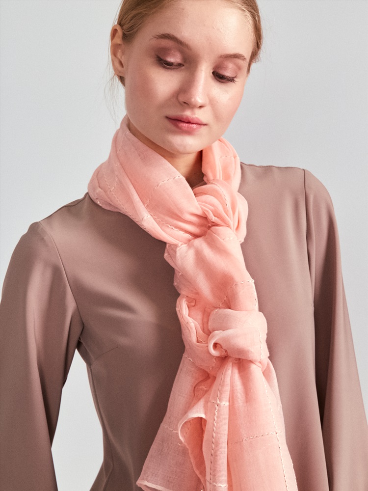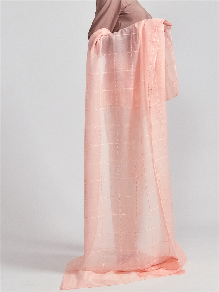 Большой, красивый палантин, выполненный из гофрированной ткани и украшенный тонкими нитями люрекса. Края изделия аккуратно подшиты. Только ручная стирка.