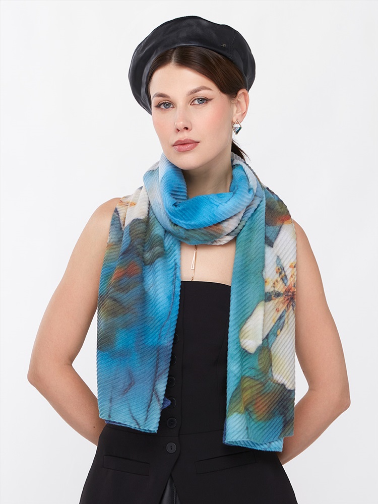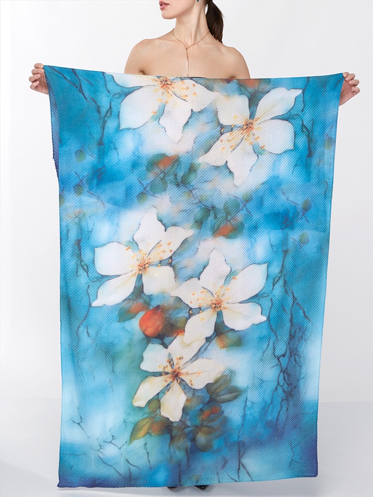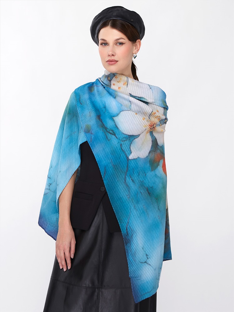Большой, мягкий, тонкий и очень нежный двусторонний палантин с рисунком. Ткань жатая. Только ручная стирка.
