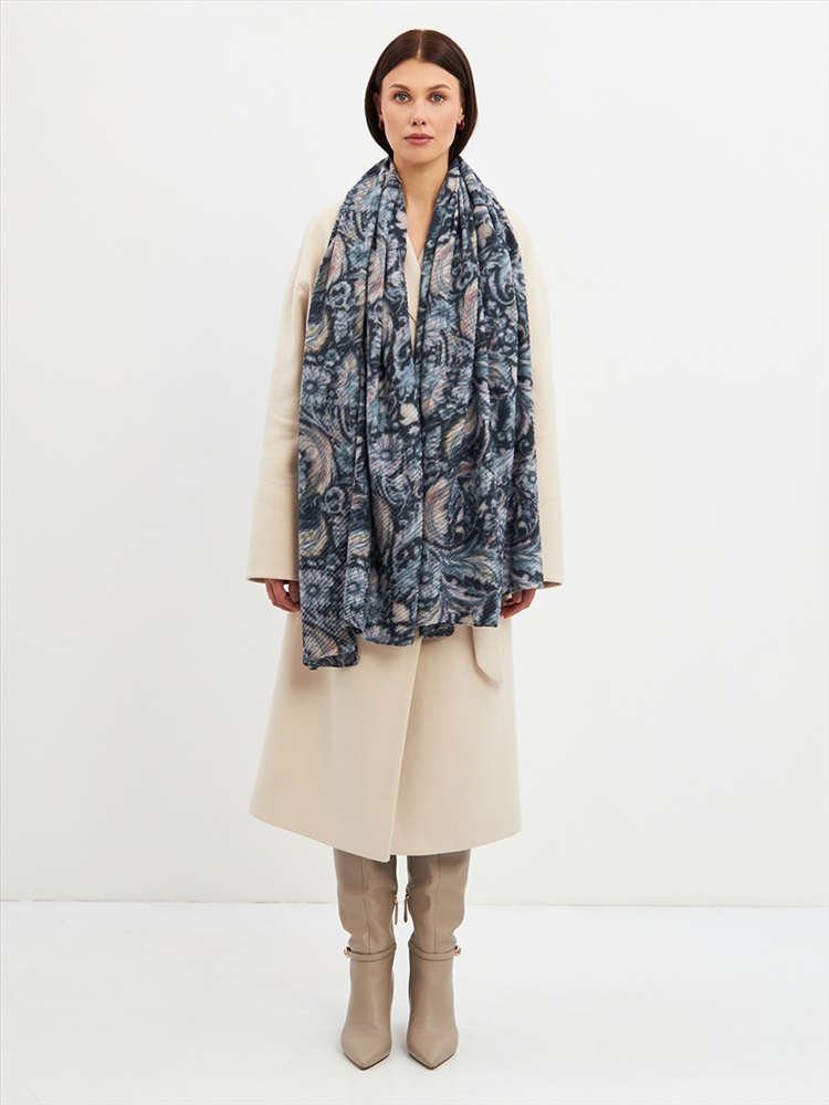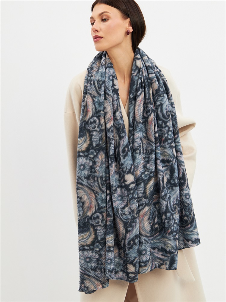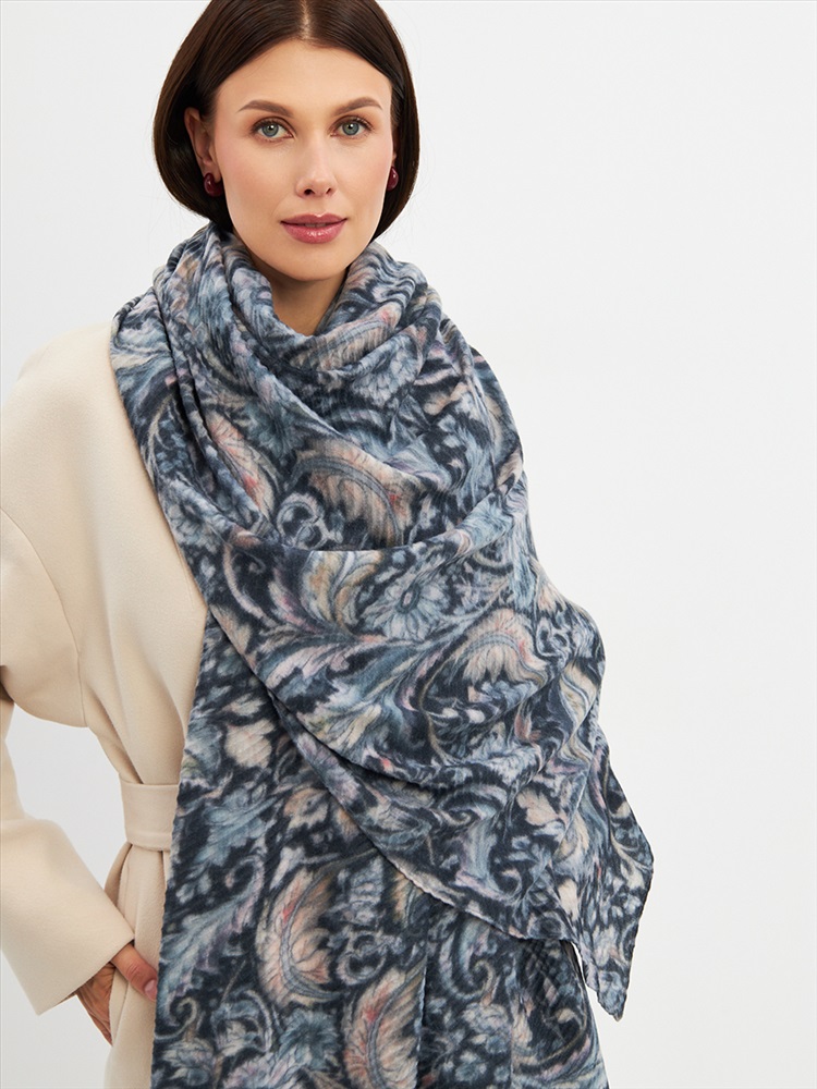 Состав: 55% тенсел, 45% вискоза Состав: Вискоза, Полиэстер Принт: Абстракция, Полоска Сезон: Демисезон, Осень, Весна Цвет: Белый, Графит, Серый Размер: 85 x 180 см Большой, мягкий, тонкий и очень нежный двусторонний палантин с рисунком. Ткань жатая. Только ручная стирка. Комментарии к товару