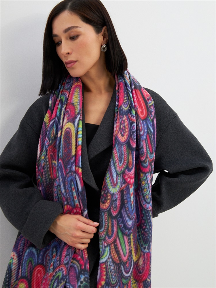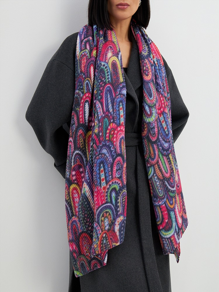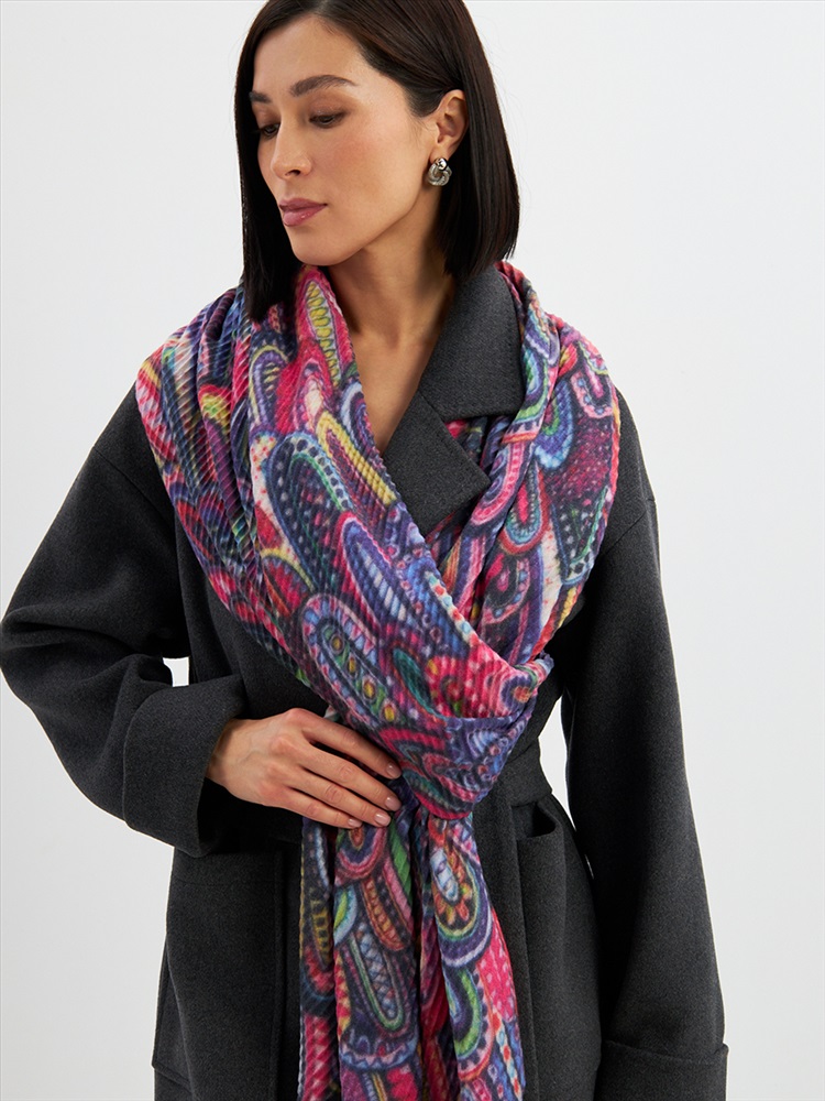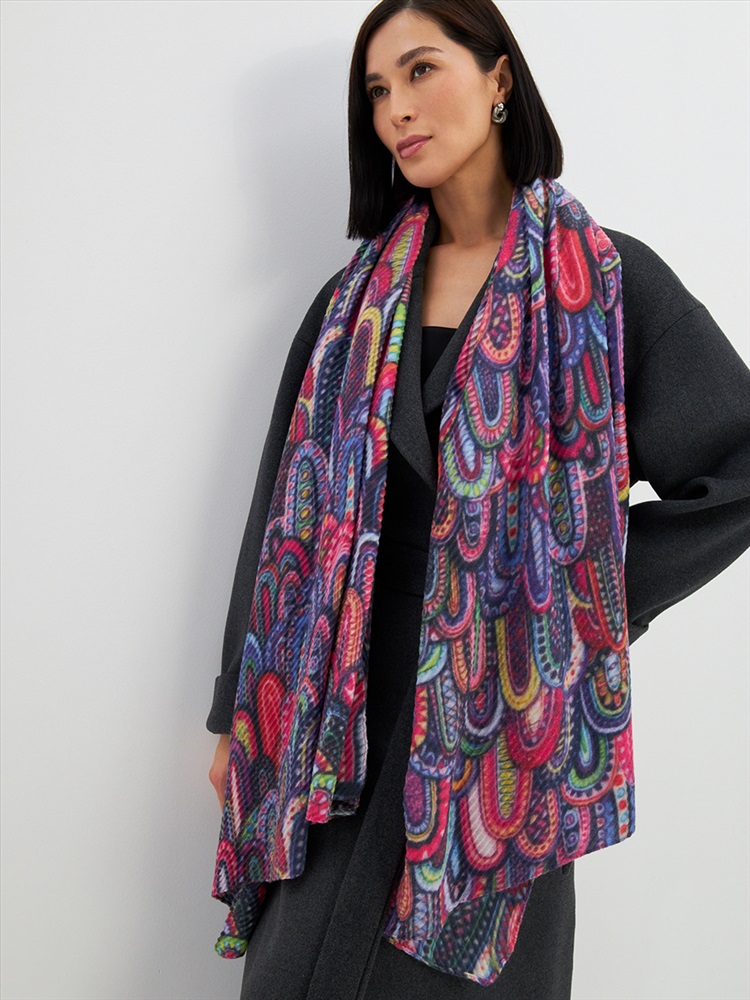 Большой, мягкий, тонкий и очень нежный двусторонний палантин с рисунком. Ткань жатая. Только ручная стирка.