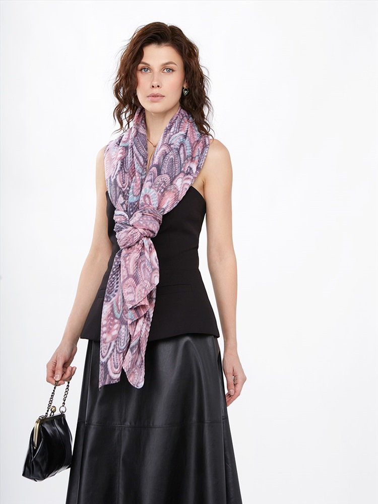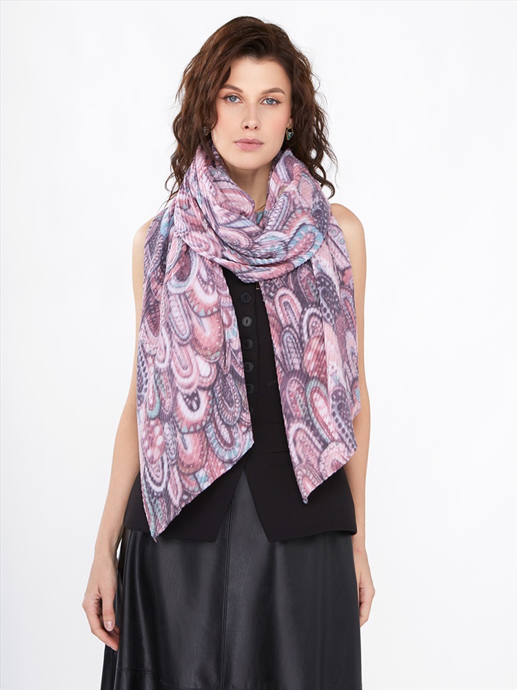 Большой, мягкий, тонкий и очень нежный двусторонний палантин с рисунком. Ткань жатая. Только ручная стирка.