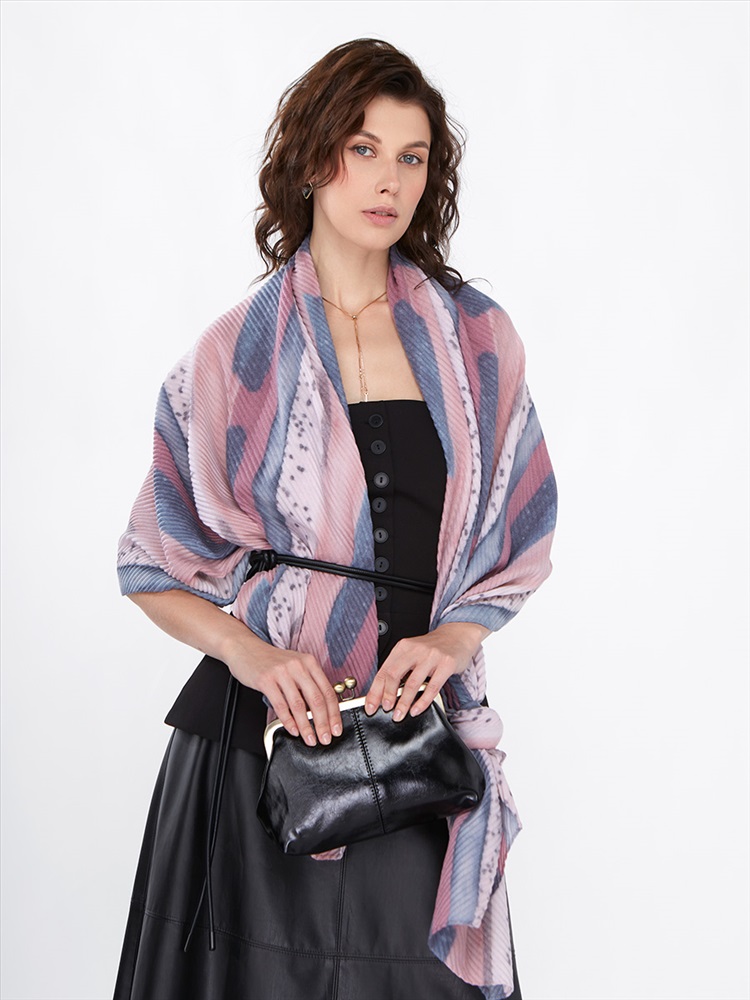 Большой, мягкий, тонкий и очень нежный двусторонний палантин с рисунком. Ткань жатая. Только ручная стирка.