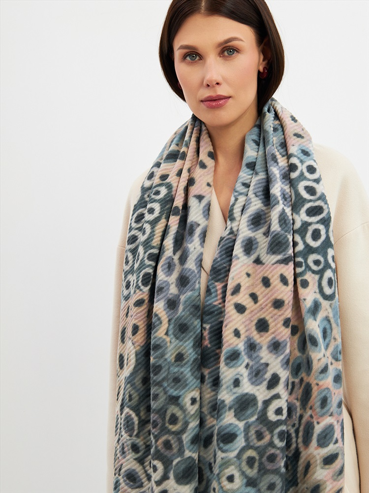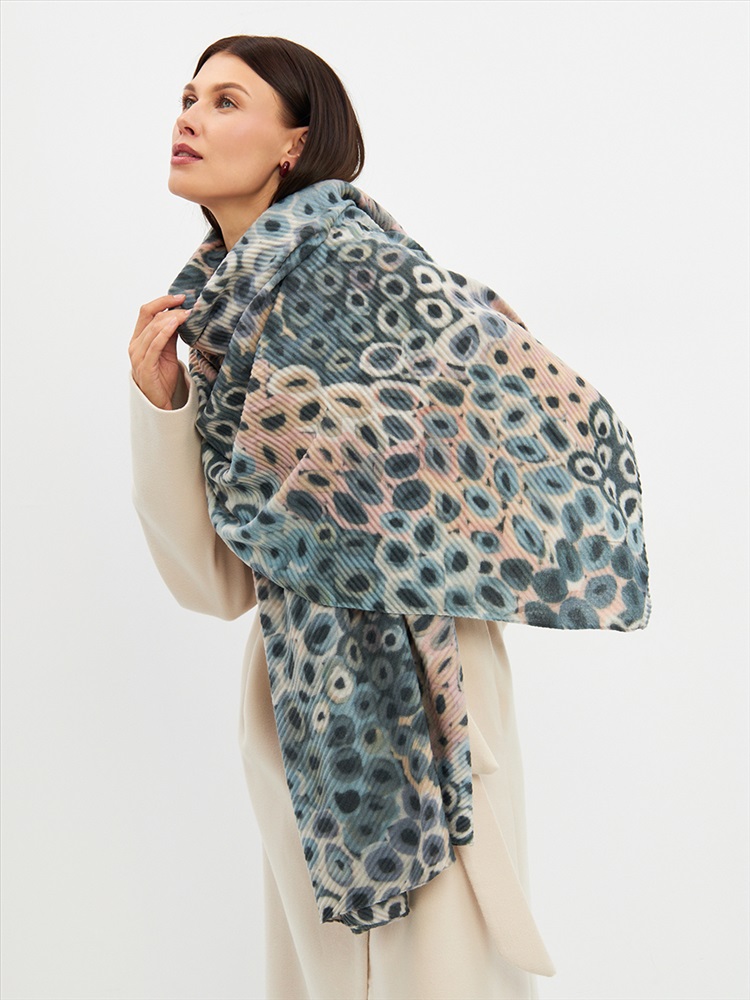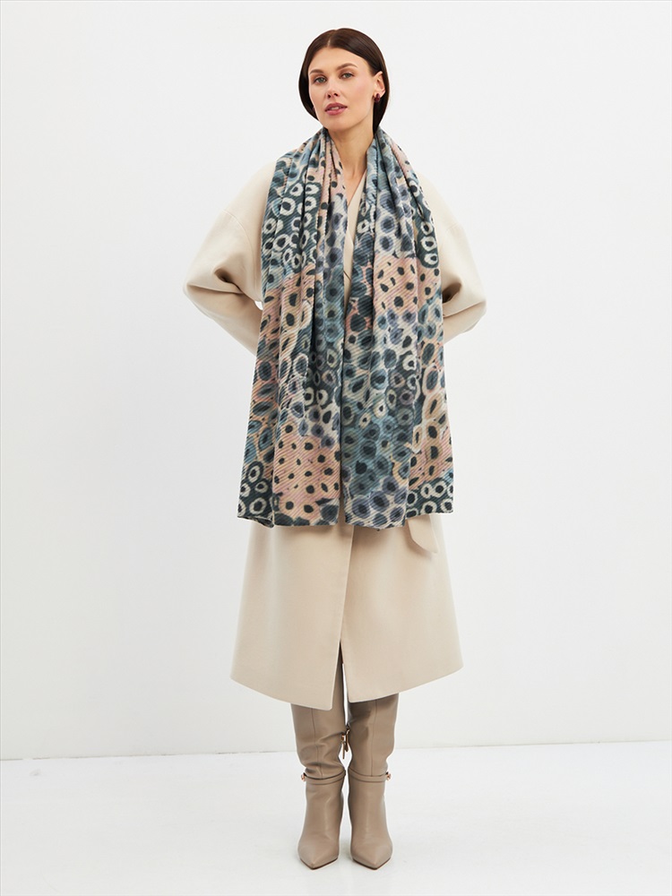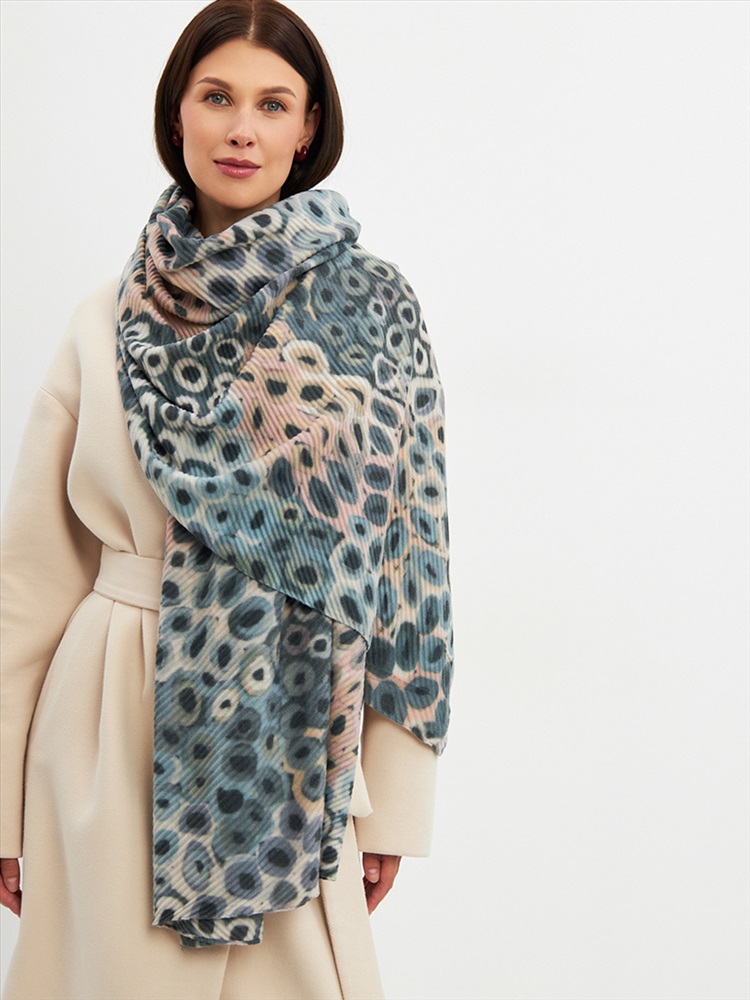 Большой, мягкий, тонкий и очень нежный двусторонний палантин с рисунком. Ткань жатая. Только ручная стирка.