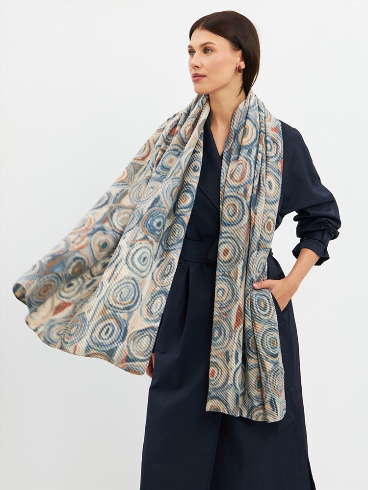 Большой, мягкий, тонкий и очень нежный двусторонний палантин с рисунком. Ткань жатая. Только ручная стирка.
