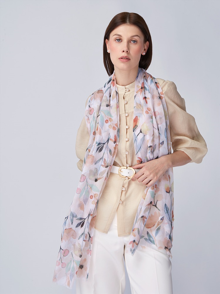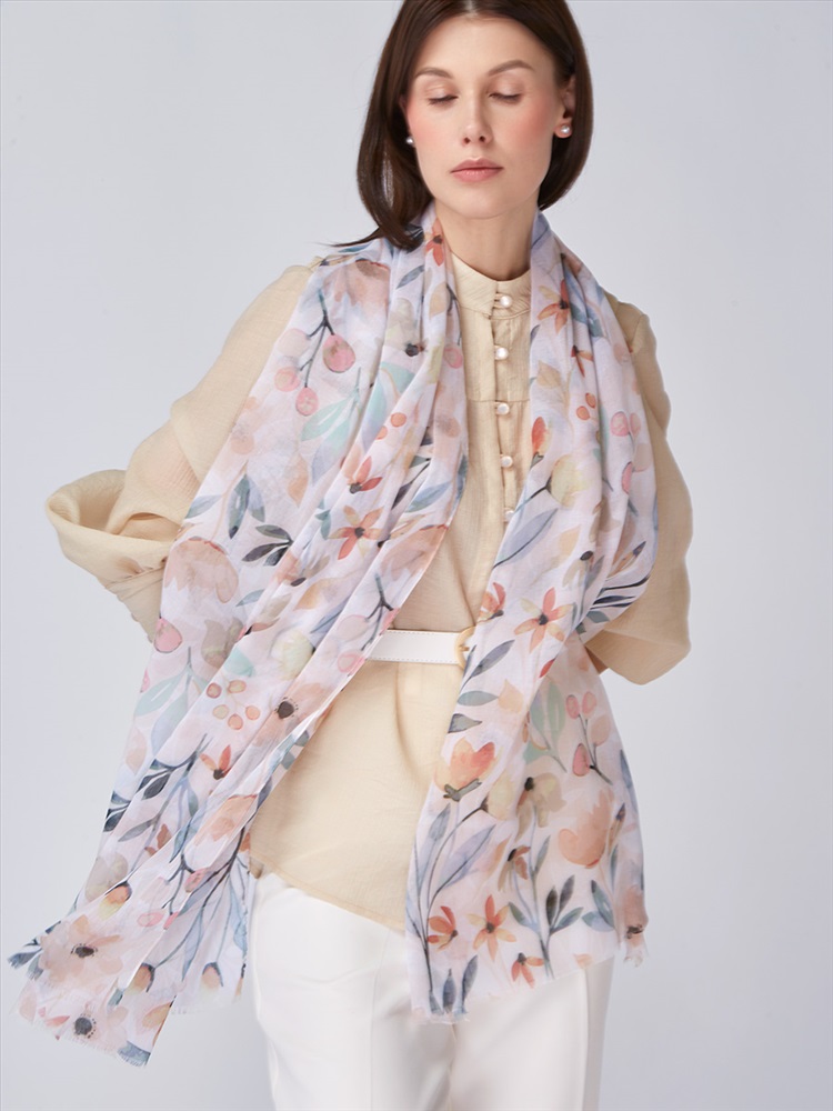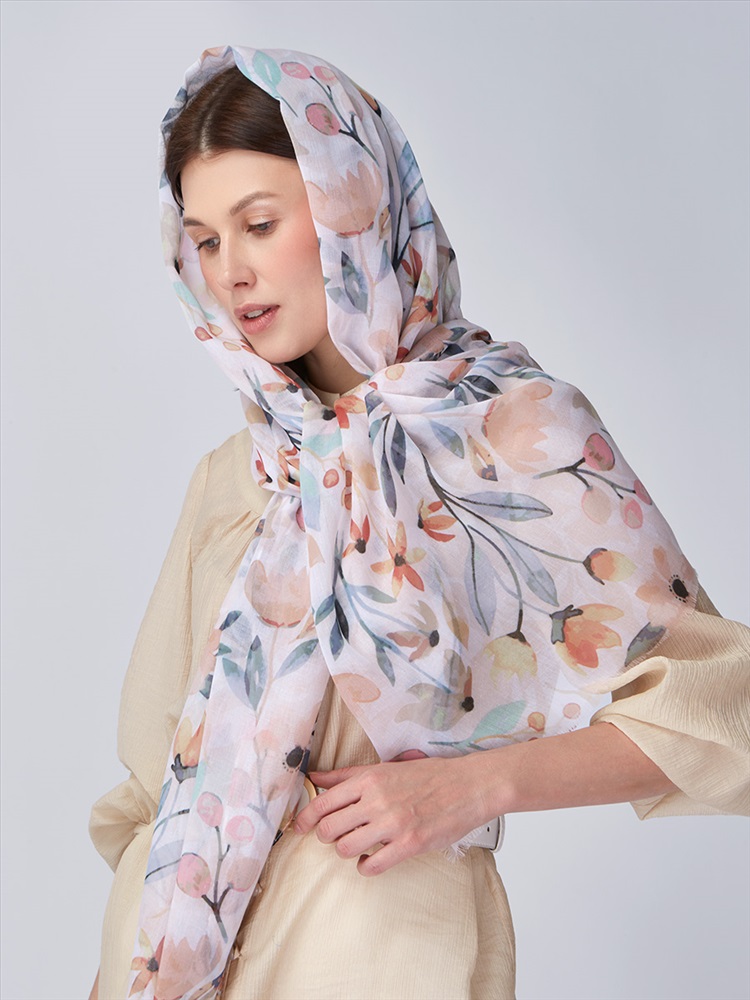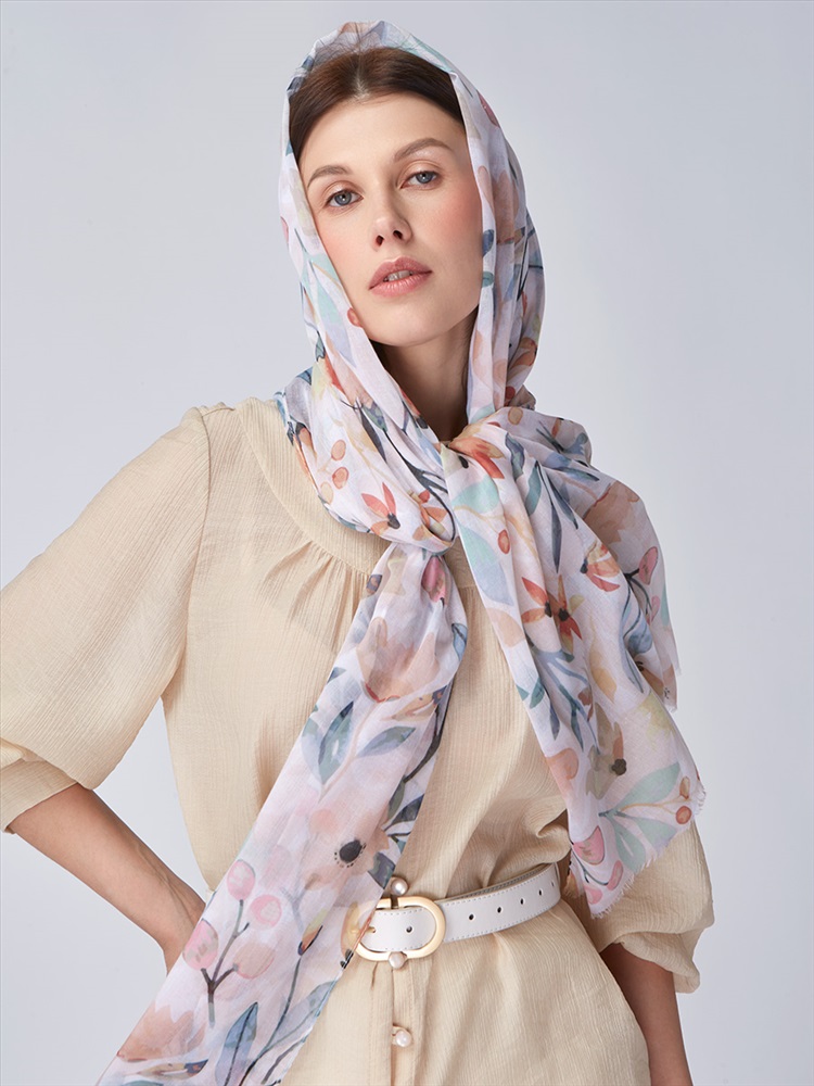 Цвет: Бежевый, Белый, Синий Состав: 55% полиэстер, 35% вискоза, 10% шелк Состав: Вискоза, Полиэстер, Лиоцелл Размер: 70 x 180 см Принт: Цветочный Сезон: Осень, Весна Большой, мягкий, тонкий и очень нежный палантин с рисунком. Только ручная стирка. Комментарии к товару