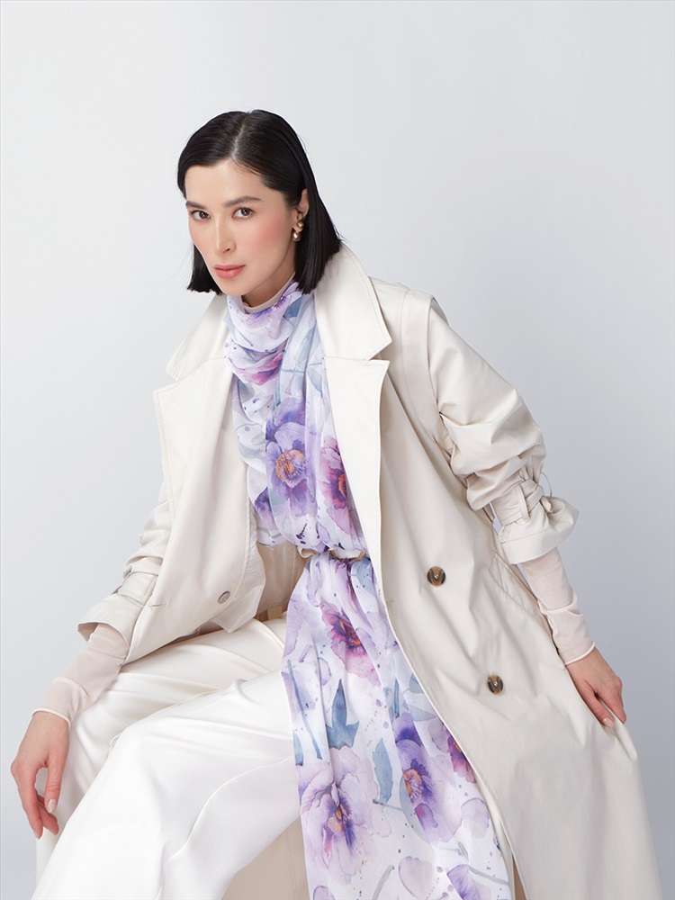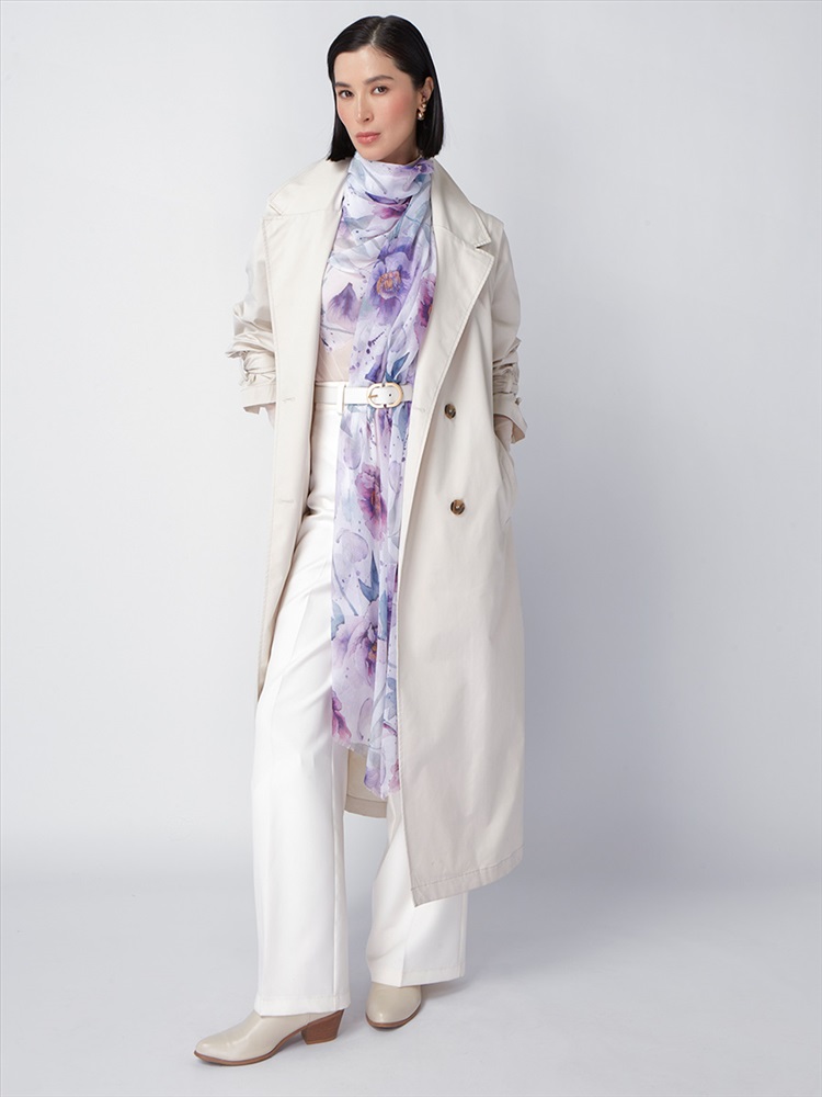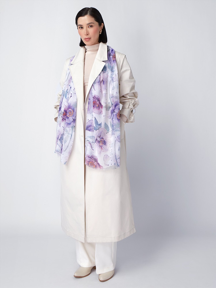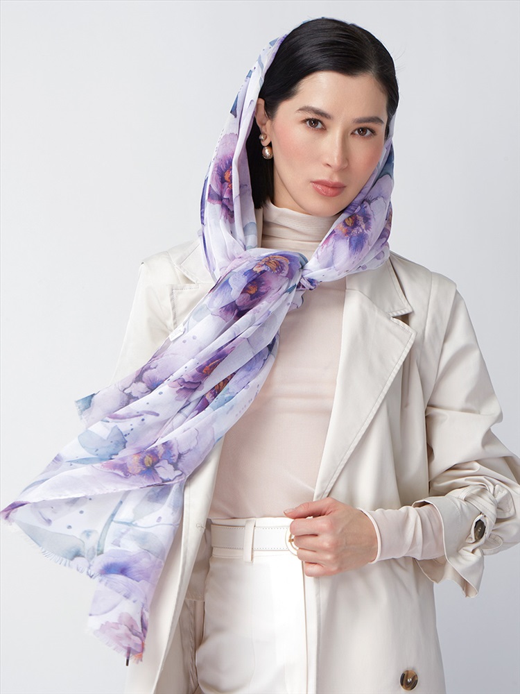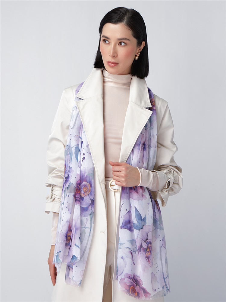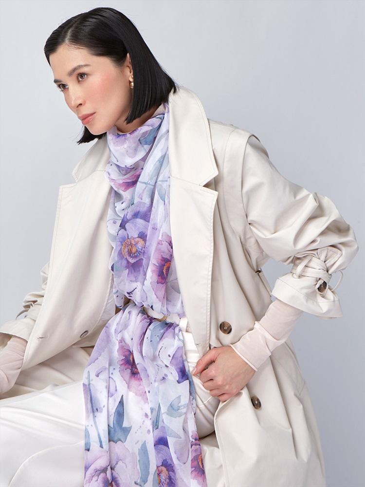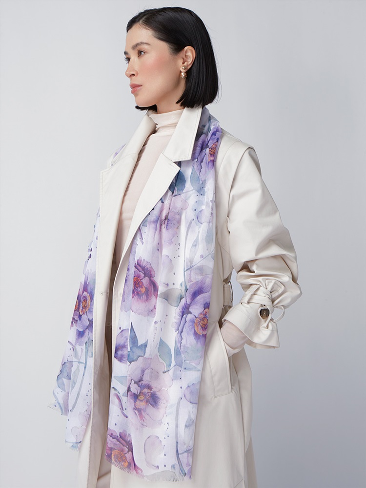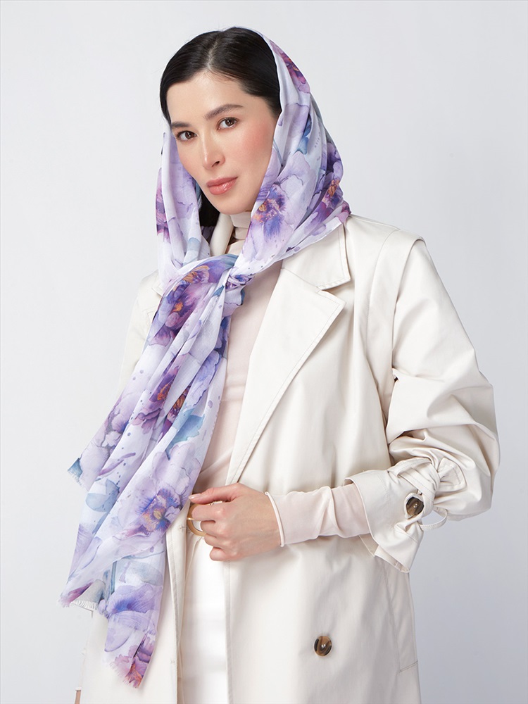 Цвет: Сиреневый, Экрю Состав: 55% полиэстер, 35% вискоза, 10% шелк Состав: Вискоза, Полиэстер, Лиоцелл Размер: 70 x 180 см Принт: Абстракция Сезон: Демисезон, Осень, Весна Большой, мягкий, тонкий и очень нежный палантин с рисунком. Только ручная стирка. Комментарии к товару