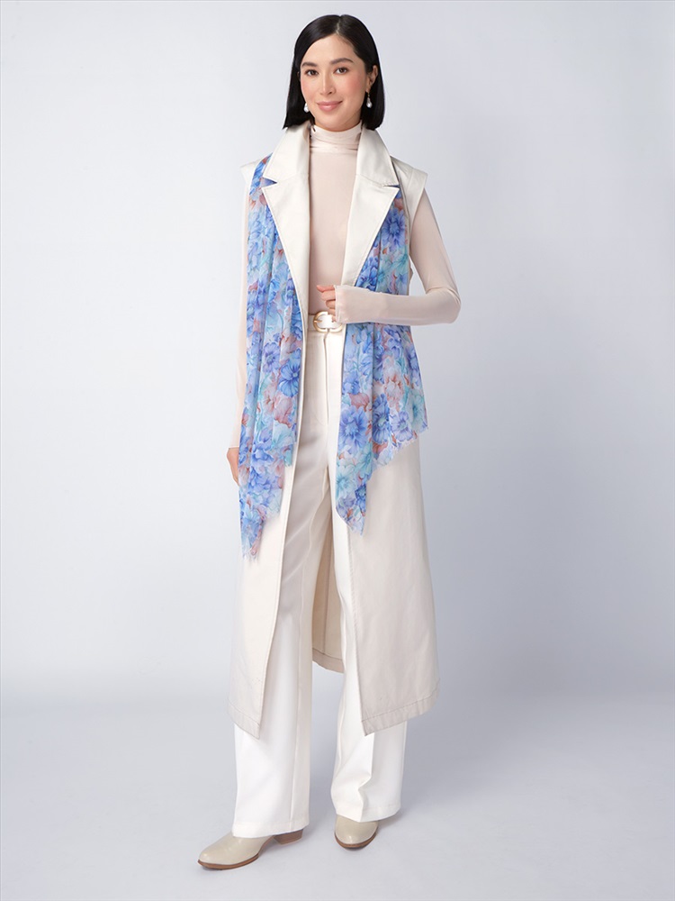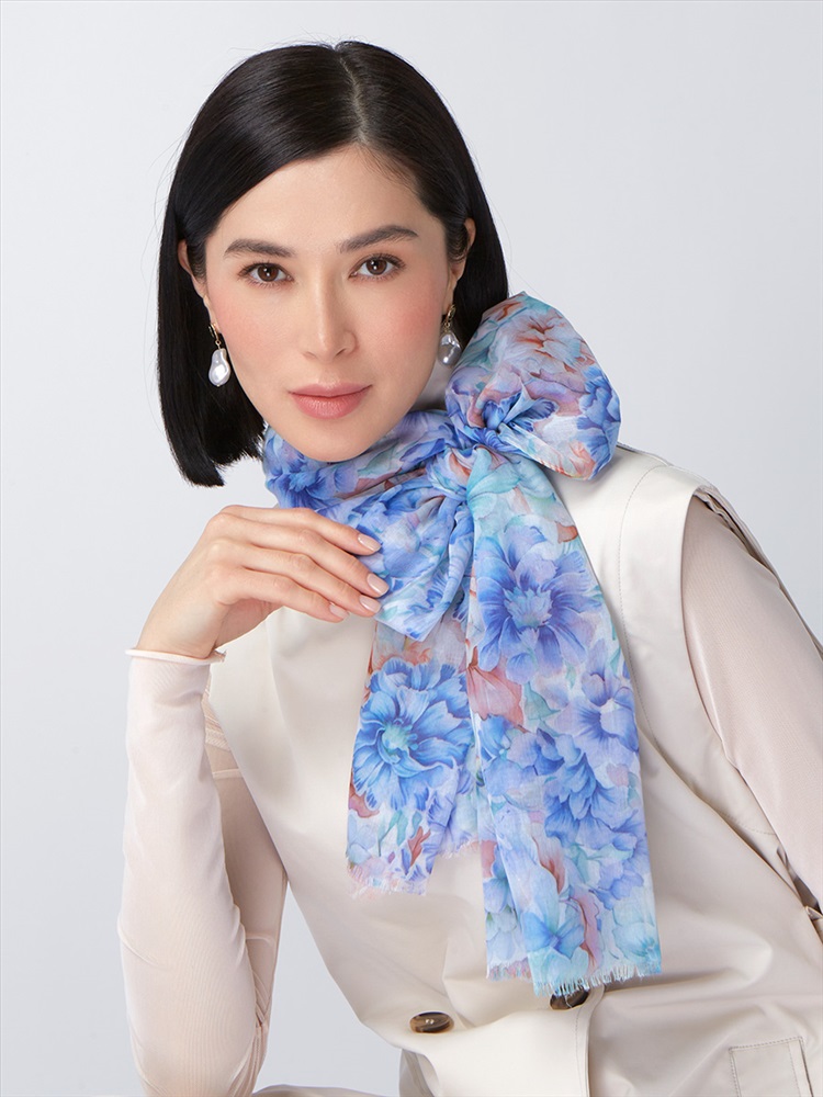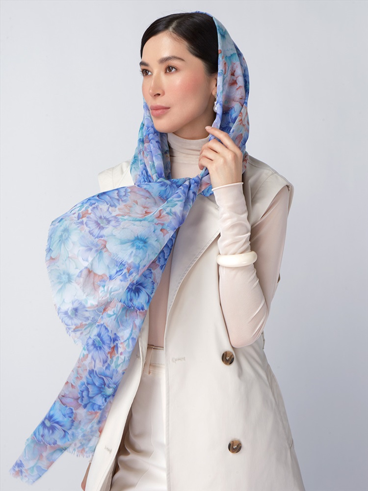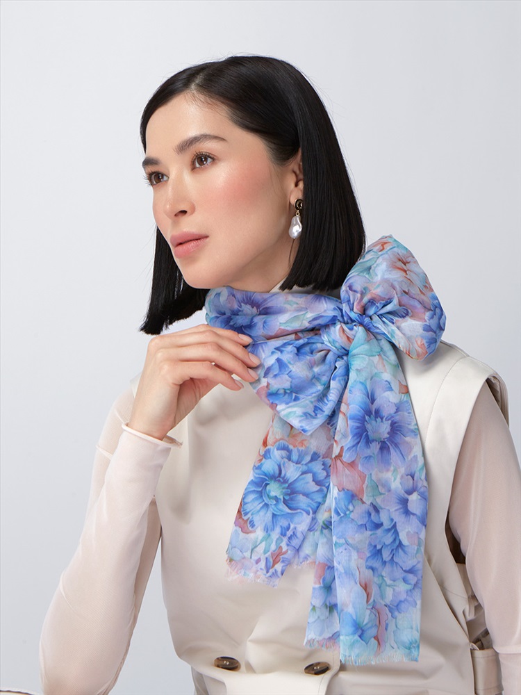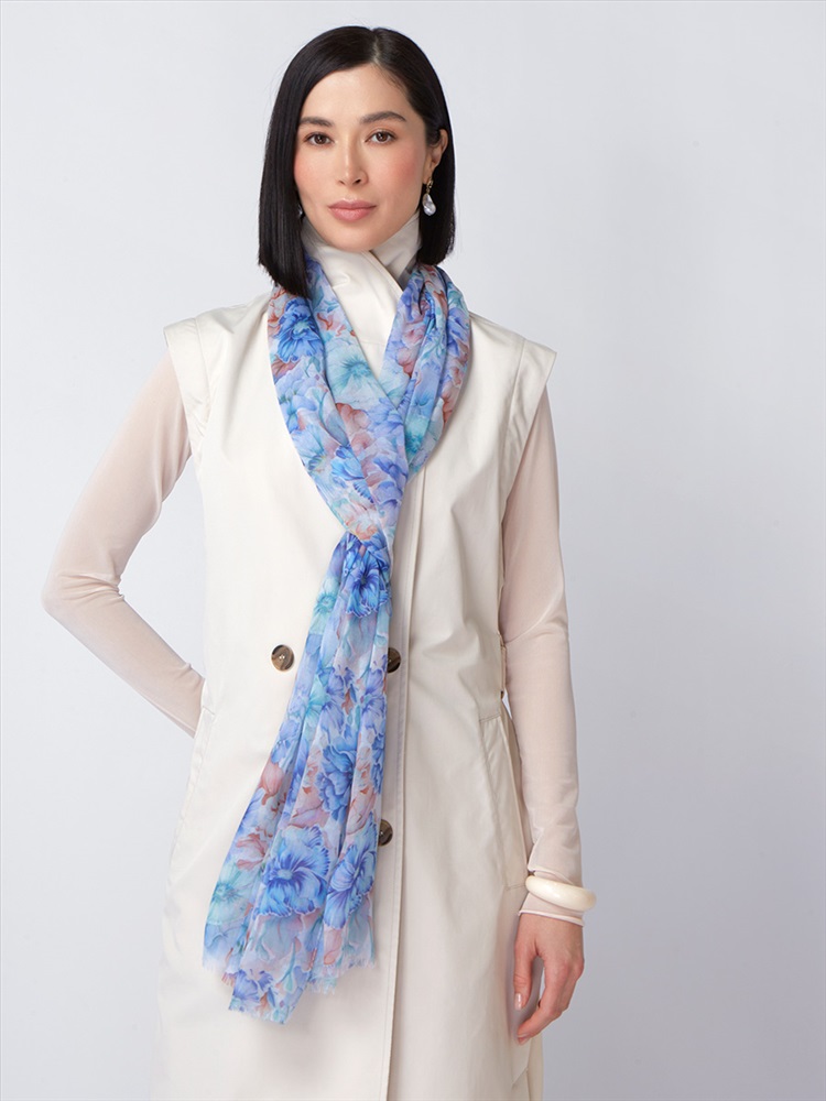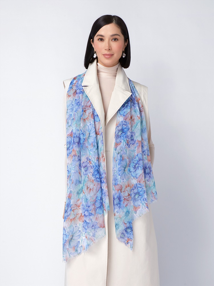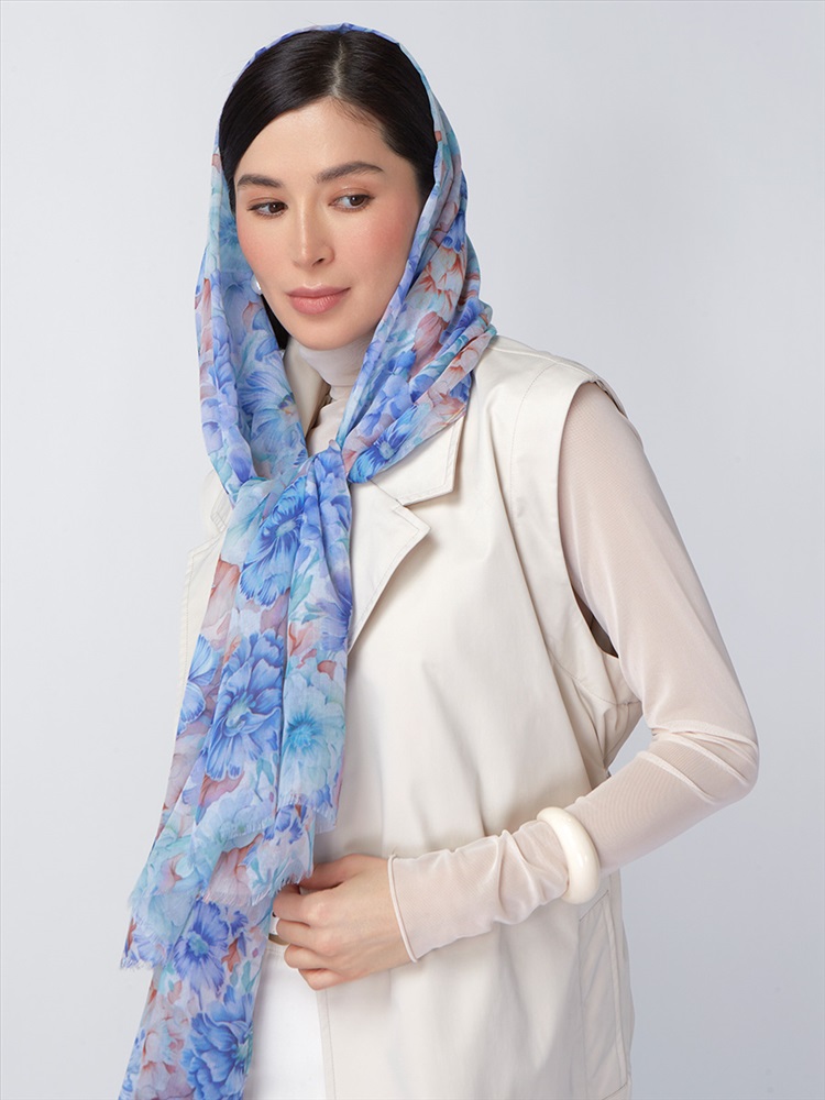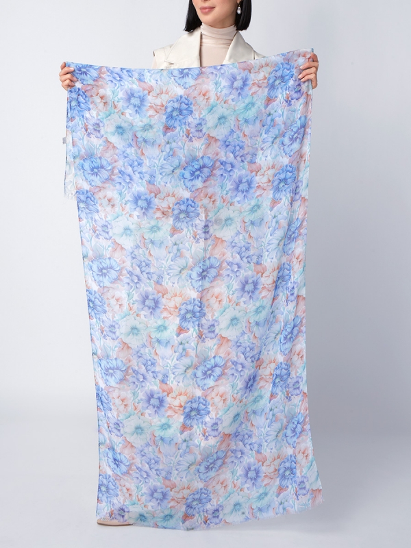 Цвет: Голубой Состав: 55% полиэстер, 35% вискоза, 10% шелк Состав: Вискоза, Полиэстер, Лиоцелл Размер: 70 x 180 см Принт: Цветочный Сезон: Осень, Весна Большой, мягкий, тонкий и очень нежный палантин с рисунком. Только ручная стирка. Комментарии к товару