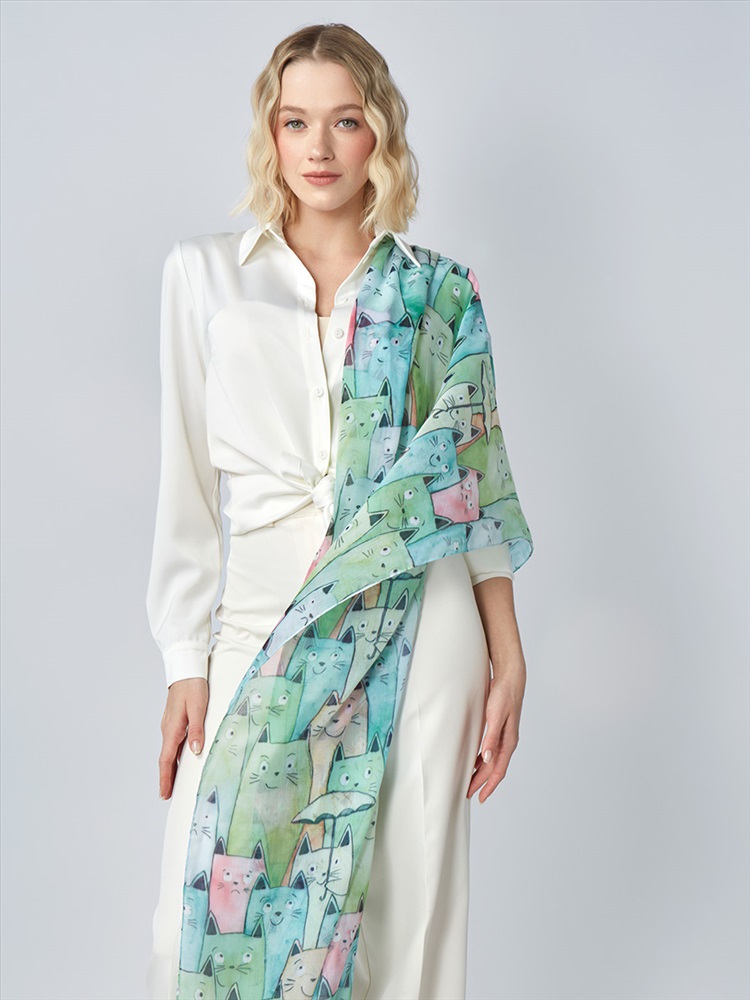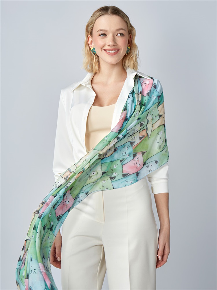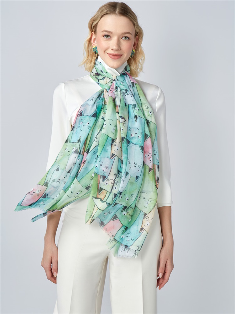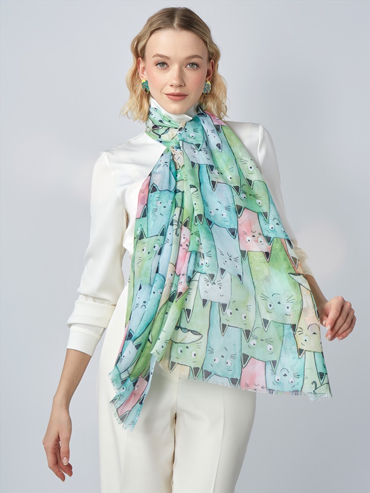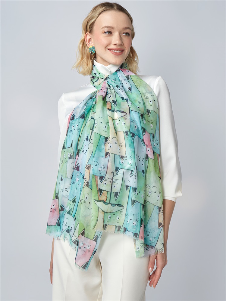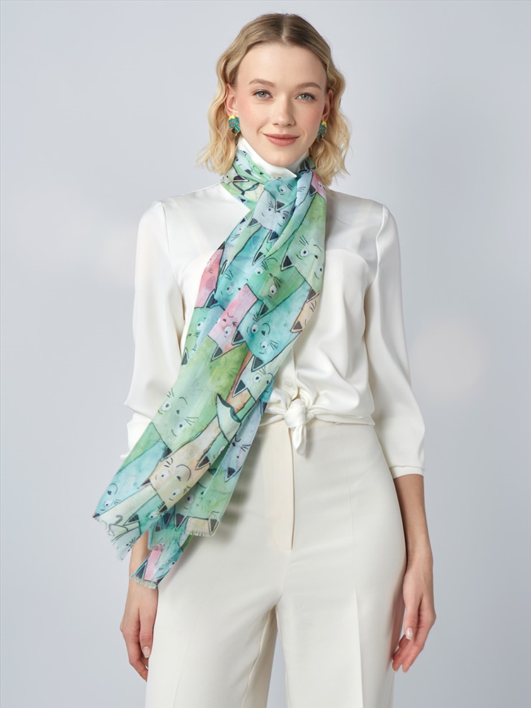 Цвет: Голубой, Зеленый Состав: 55% полиэстер, 35% вискоза, 10% шелк Состав: Вискоза, Полиэстер, Лиоцелл Размер: 70 x 180 см Принт: Абстракция Сезон: Осень, Весна Большой, мягкий, тонкий и очень нежный палантин с рисунком. Только ручная стирка. Комментарии к товару