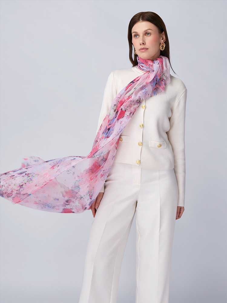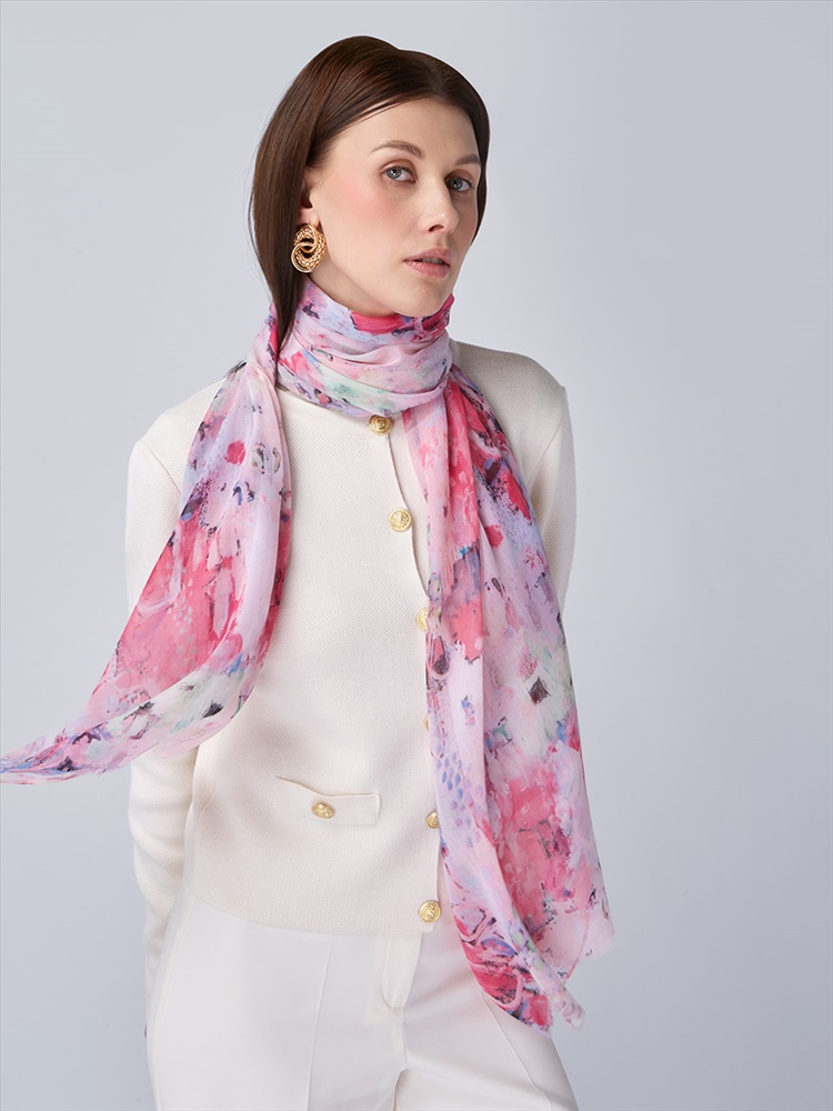 Цвет: Белый, Розовый Состав: 55% полиэстер, 35% вискоза, 10% шелк Состав: Вискоза, Полиэстер, Лиоцелл Размер: 70 x 180 см Принт: Цветочный Сезон: Осень, Весна Большой, мягкий, тонкий и очень нежный палантин с рисунком. Только ручная стирка. Комментарии к товару
