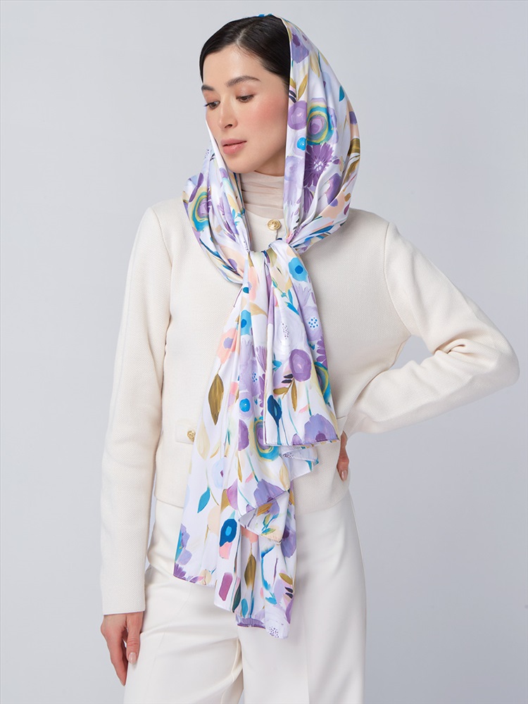 Цвет: Белый, Фиолетовый Состав: 45% полиэстер, 35% вискоза, 20% шелк Состав: Вискоза, Полиэстер, Шелк Размер: 70 х 185 см Принт: Цветочный Сезон: Осень, Весна Большой, мягкий, тонкий и очень нежный палантин с рисунком. Только ручная стирка. Комментарии к товару