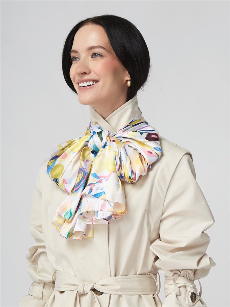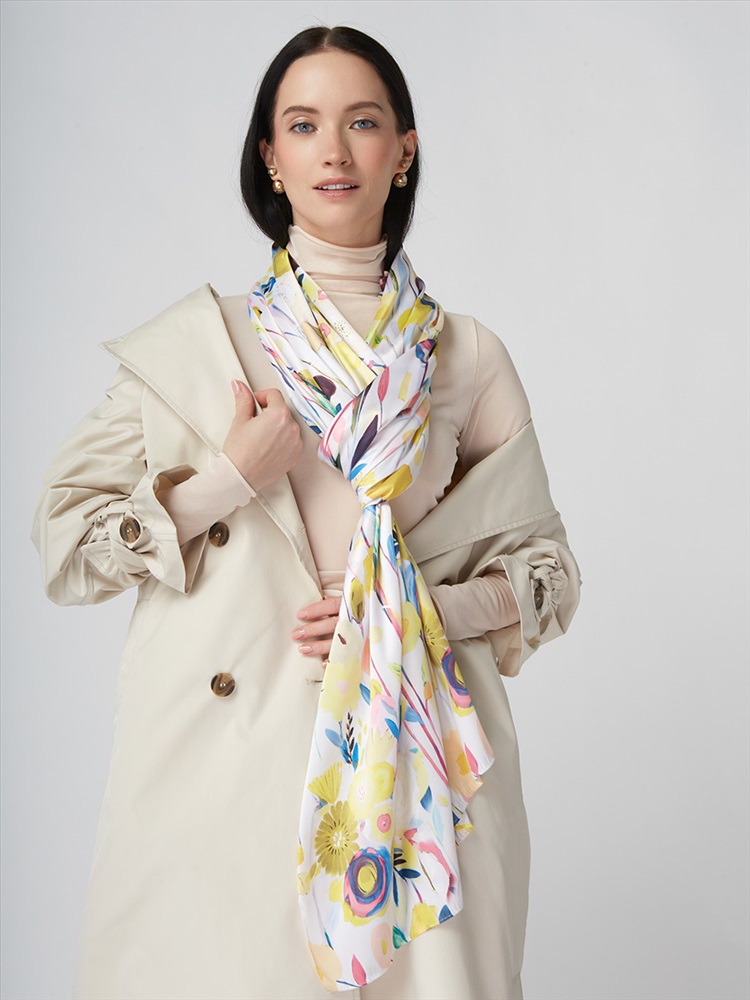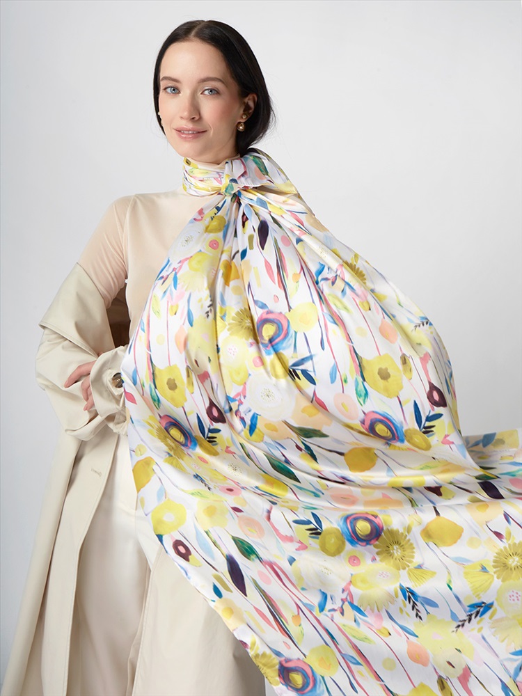 Цвет: Желтый, Экрю Состав: 45% полиэстер, 35% вискоза, 20% шелк Состав: Вискоза, Полиэстер, Шелк Размер: 70 х 185 см Принт: Цветочный Сезон: Осень, Весна Большой, мягкий, тонкий и очень нежный палантин с рисунком. Только ручная стирка. Комментарии к товару