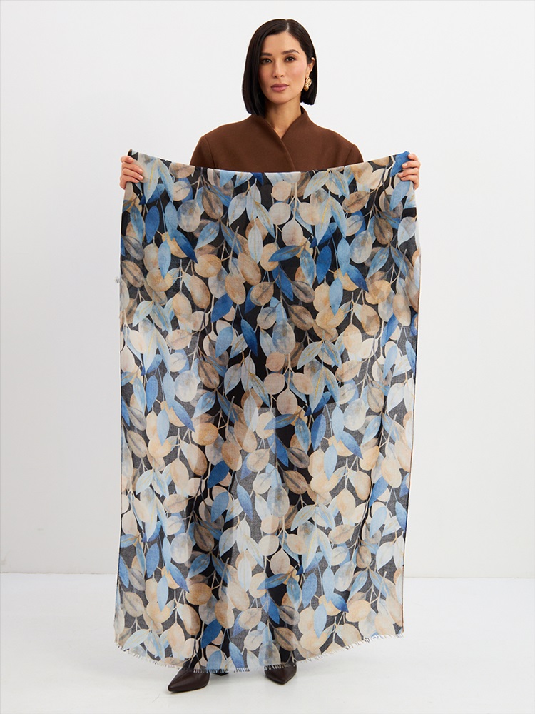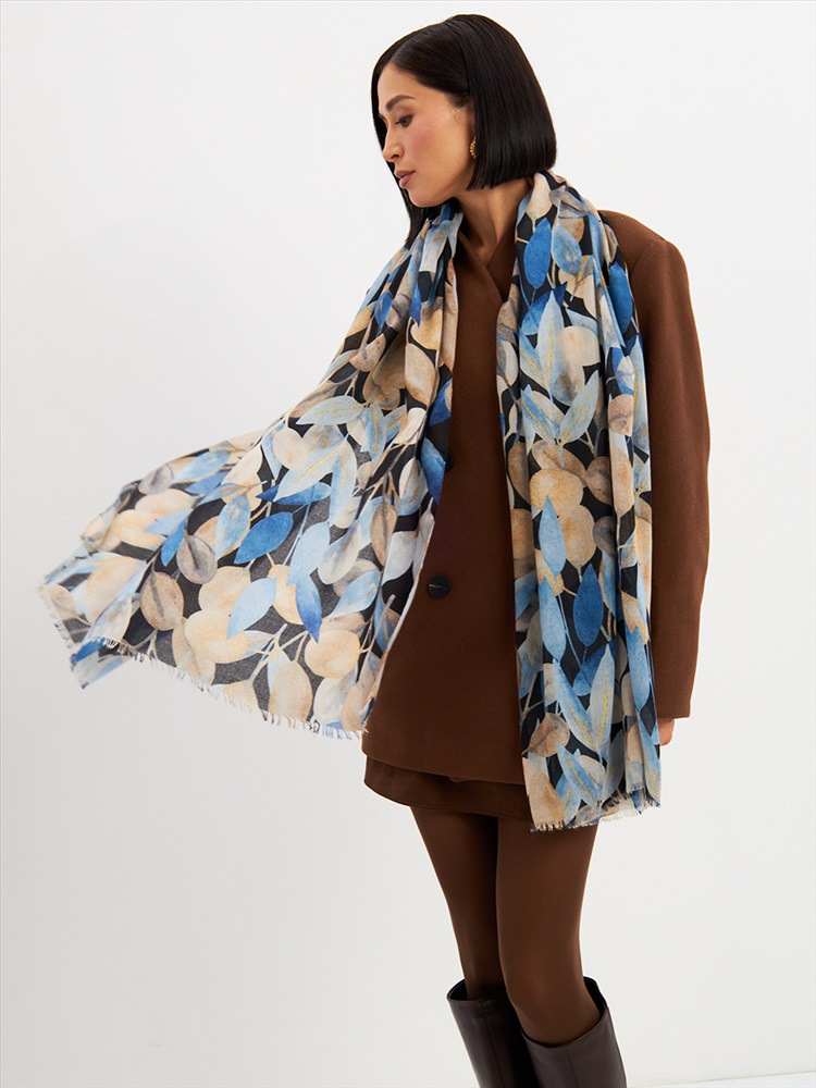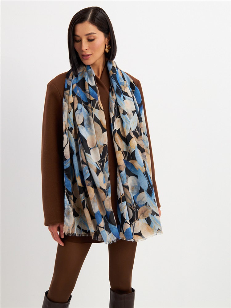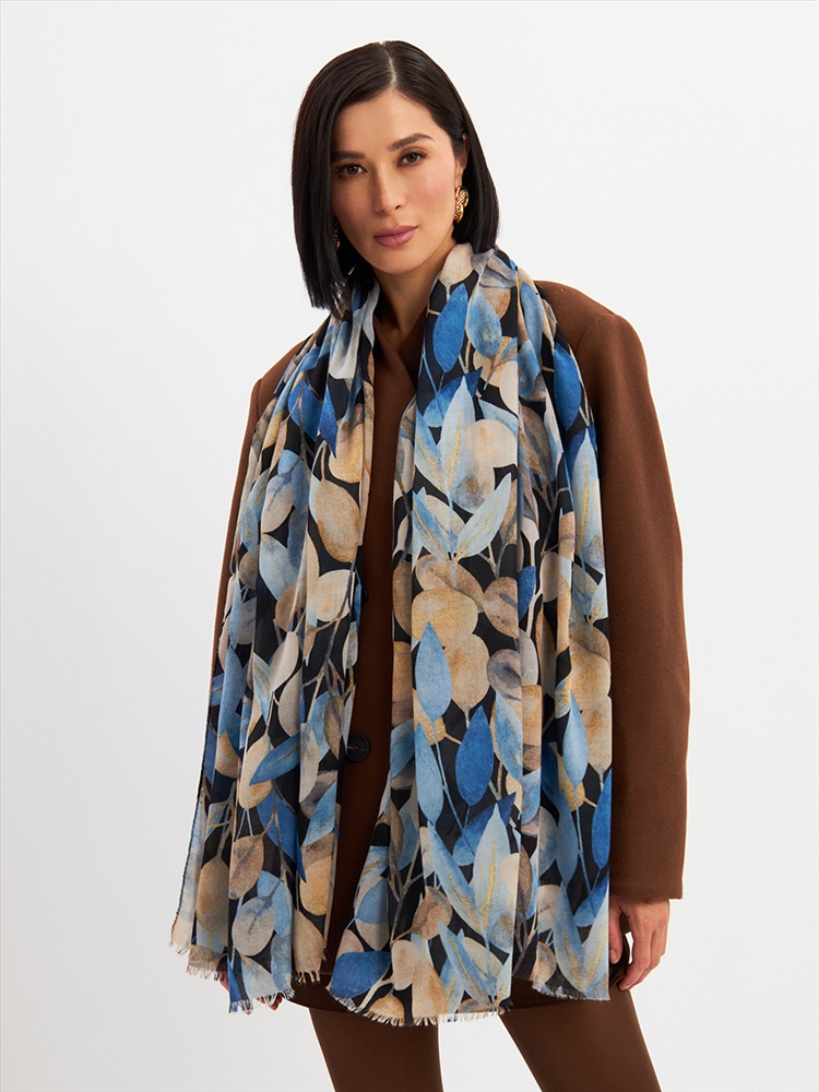 Цвет: Бежевый, Синий Размер: 80 x 180 см Состав: 55% полиэстер, 35% вискоза, 10% шелк Состав: Вискоза, Полиэстер, Шелк Принт: Цветочный Большой, мягкий, тонкий и очень нежный палантин с рисунком. Края изделия украшены бахромой ручной работы. Машинная деликатная стирка. Комментарии к товару