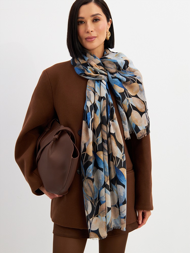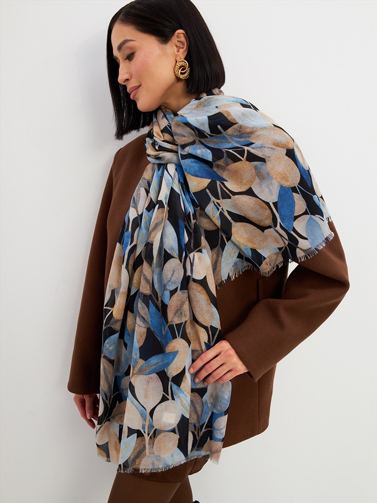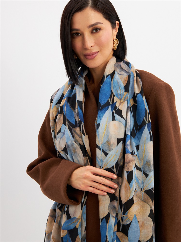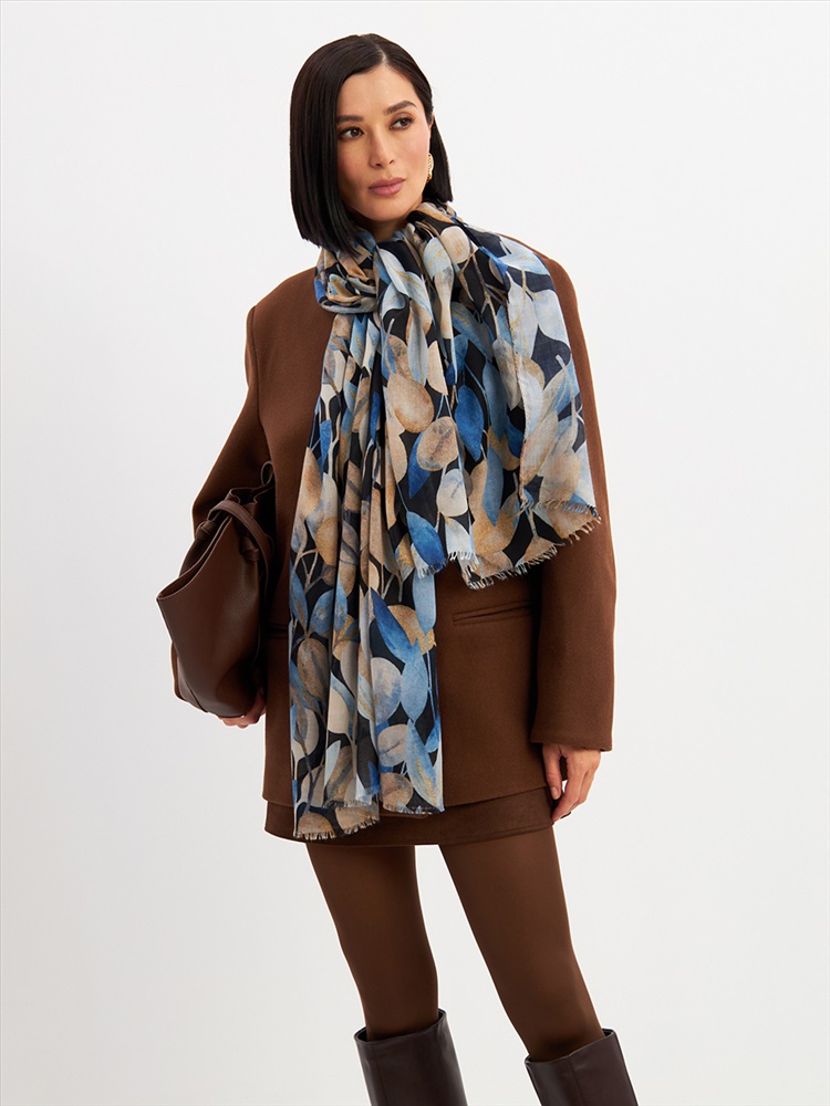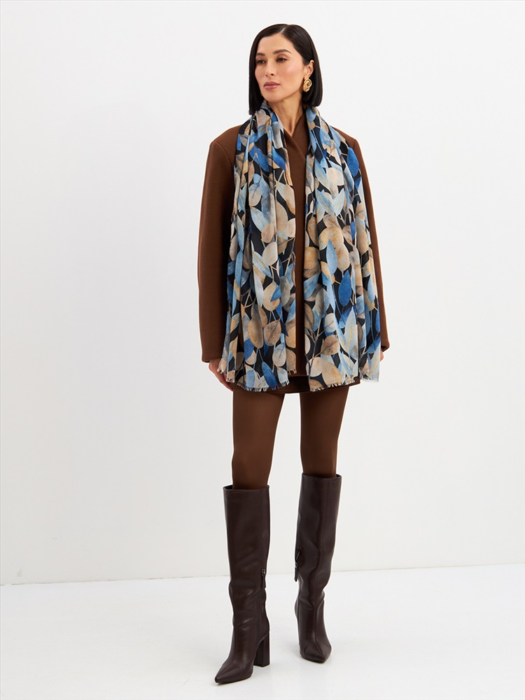 Цвет: Бежевый, Синий Размер: 80 x 180 см Состав: 55% полиэстер, 35% вискоза, 10% шелк Состав: Вискоза, Полиэстер, Шелк Принт: Цветочный Большой, мягкий, тонкий и очень нежный палантин с рисунком. Края изделия украшены бахромой ручной работы. Машинная деликатная стирка. Комментарии к товару