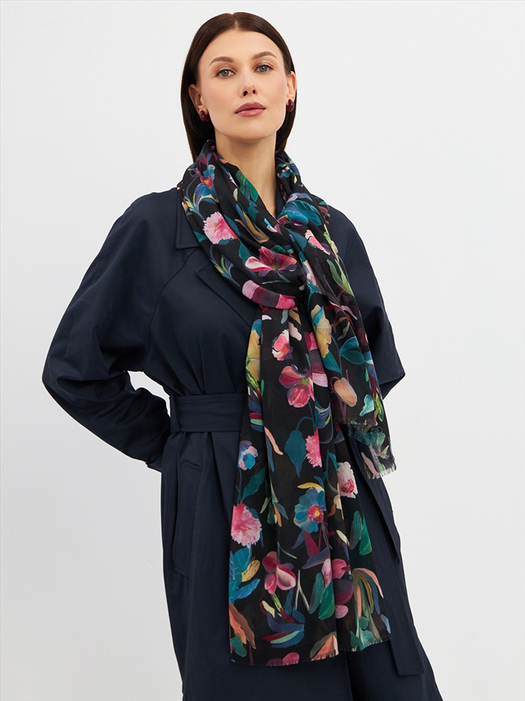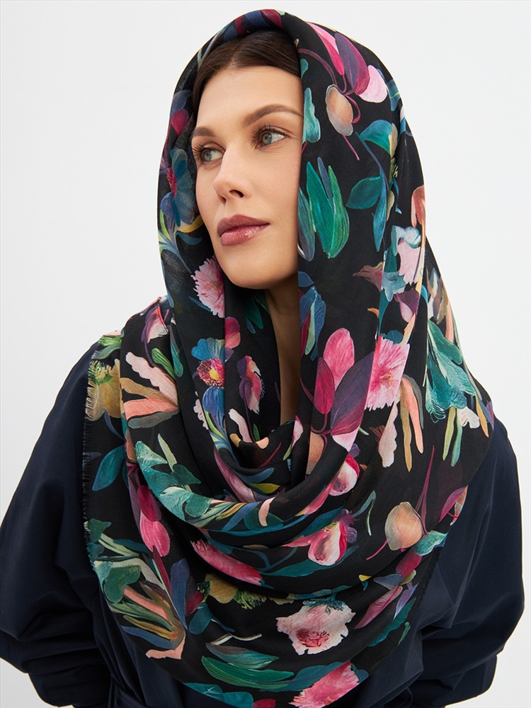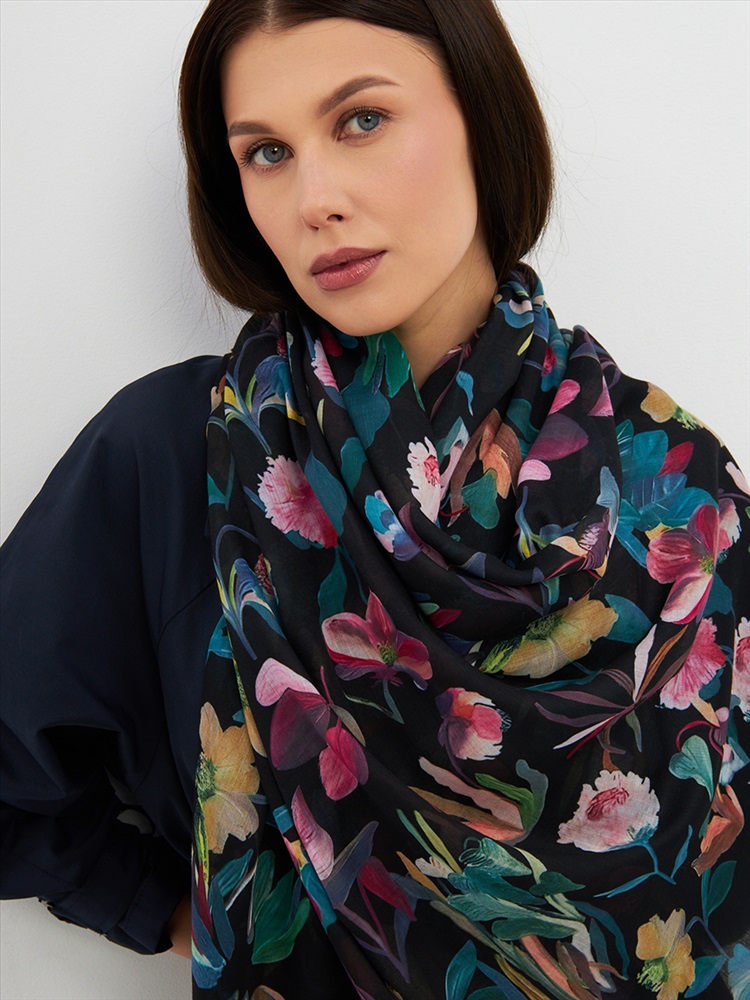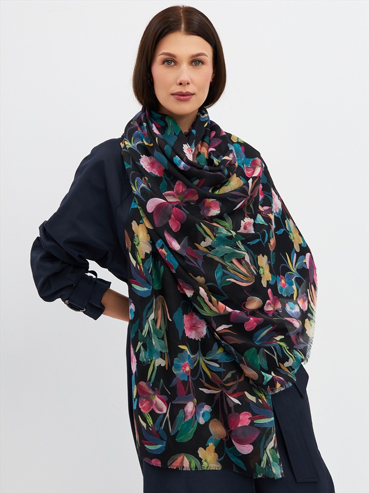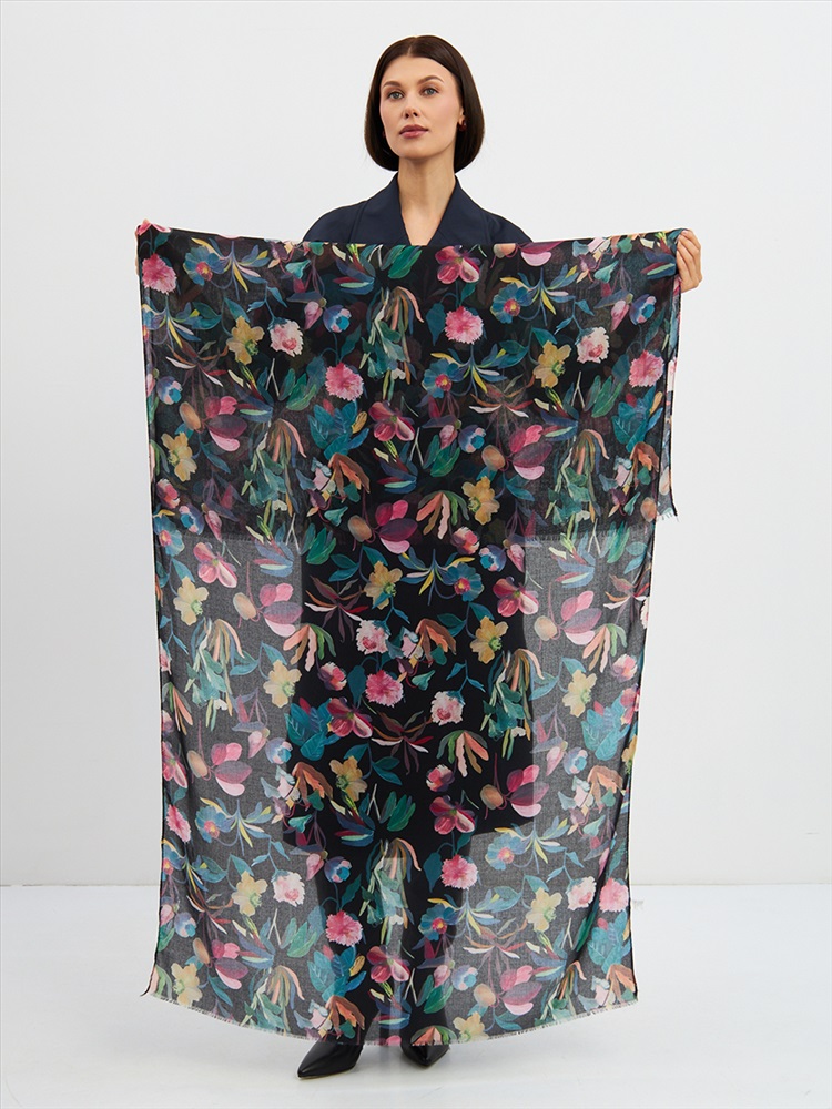 Большой, мягкий, тонкий и очень нежный палантин с рисунком. Края изделия украшены бахромой ручной работы. Машинная деликатная стирка.
