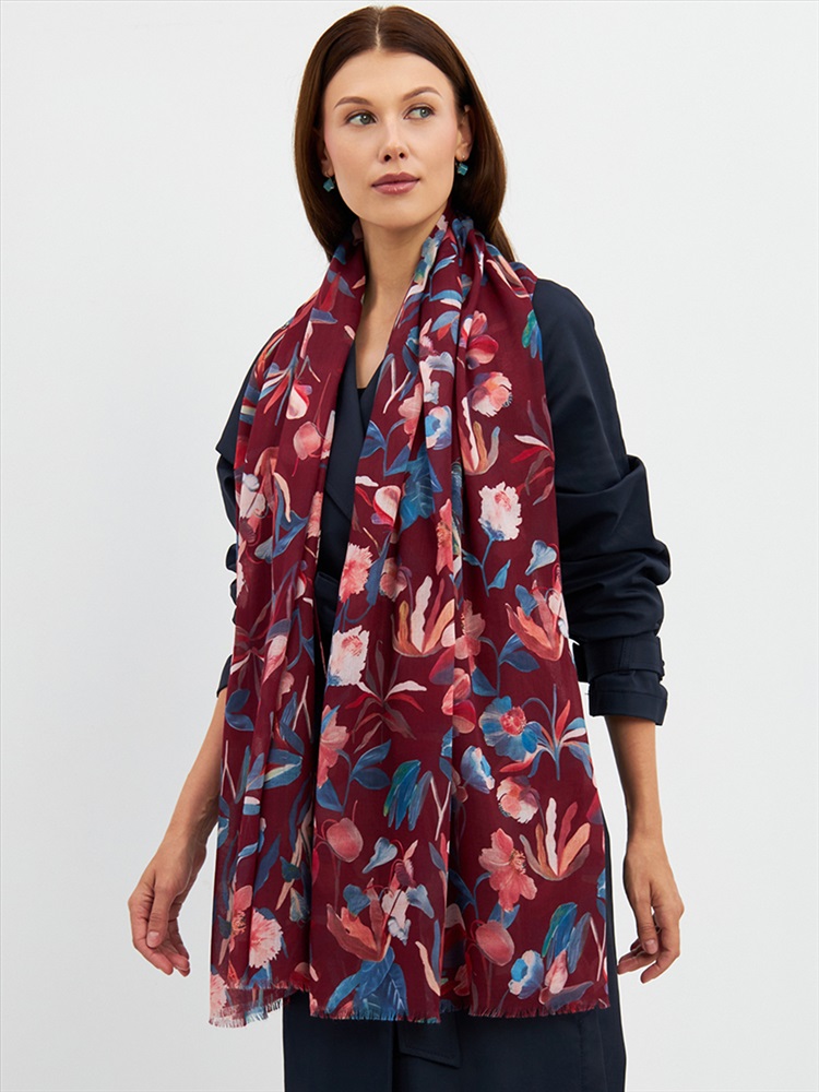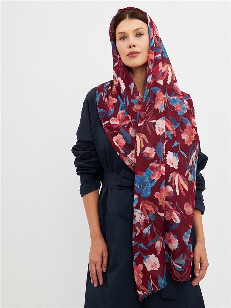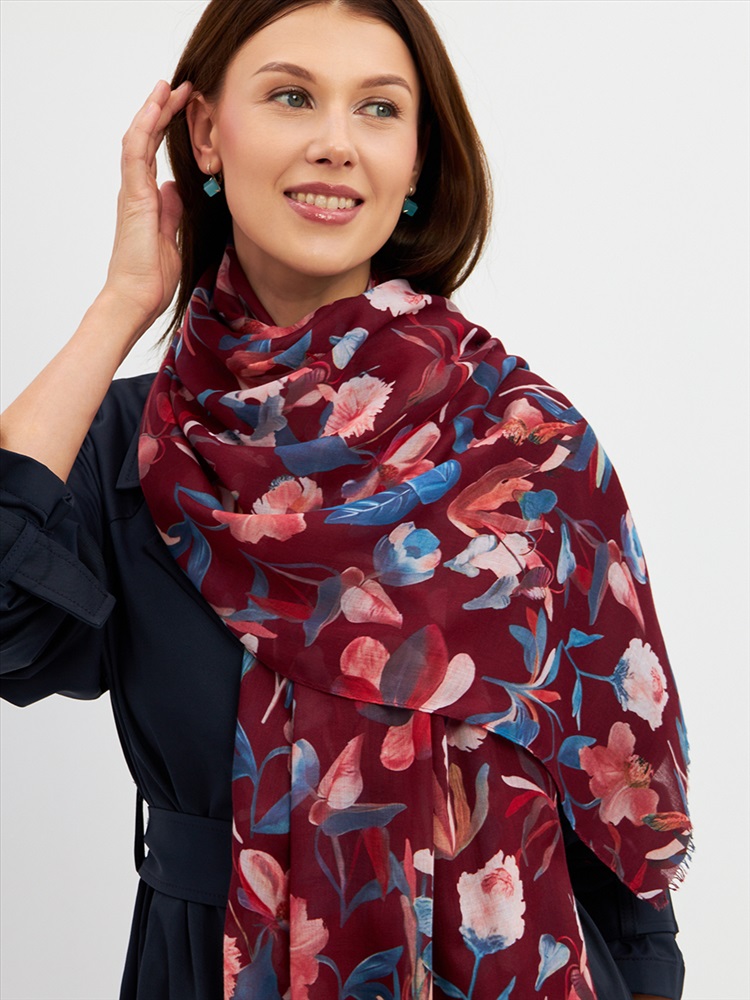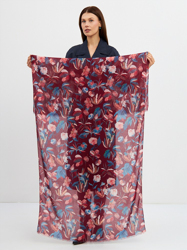 Большой, мягкий, тонкий и очень нежный палантин с рисунком. Края изделия украшены бахромой ручной работы. Машинная деликатная стирка.
