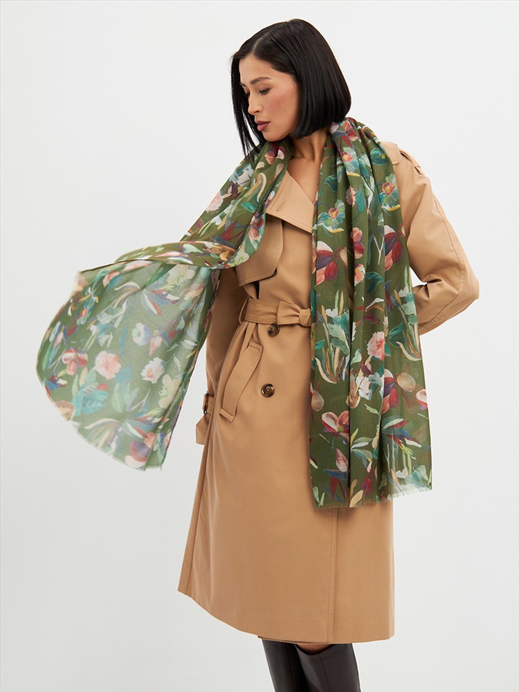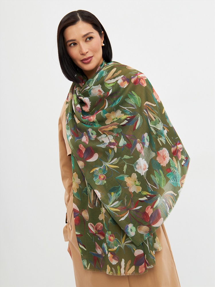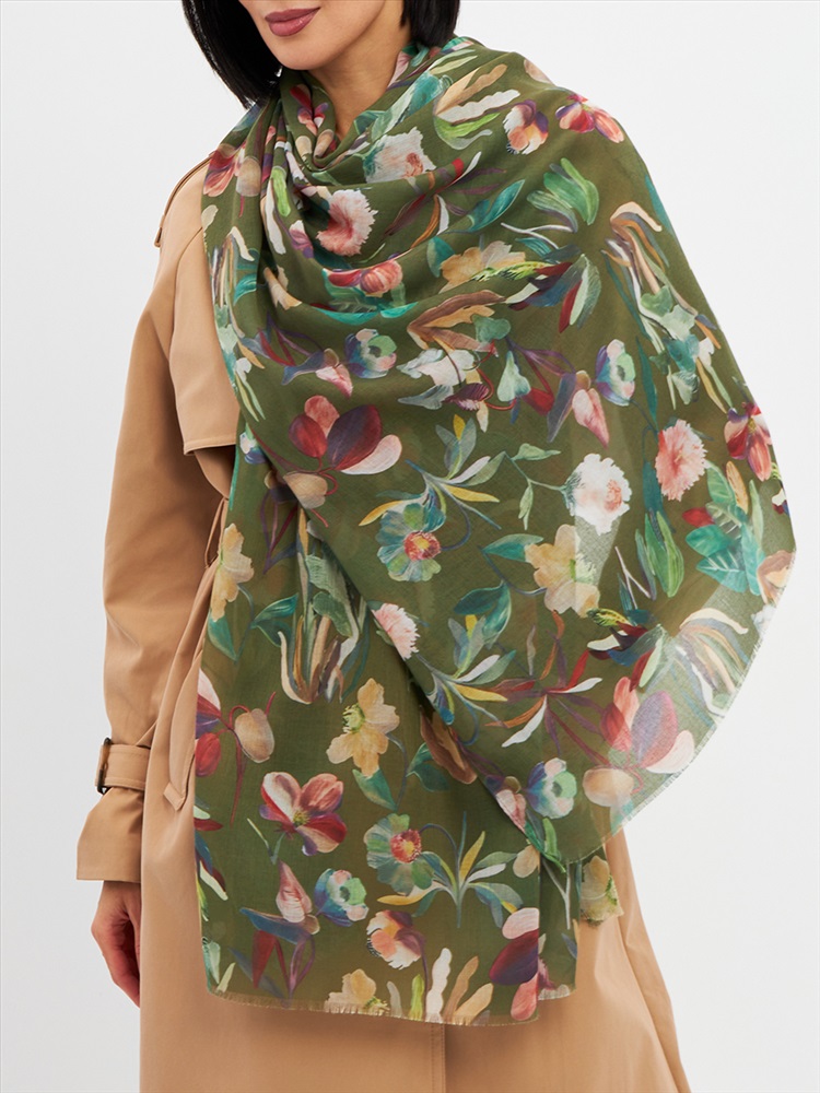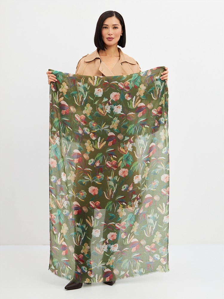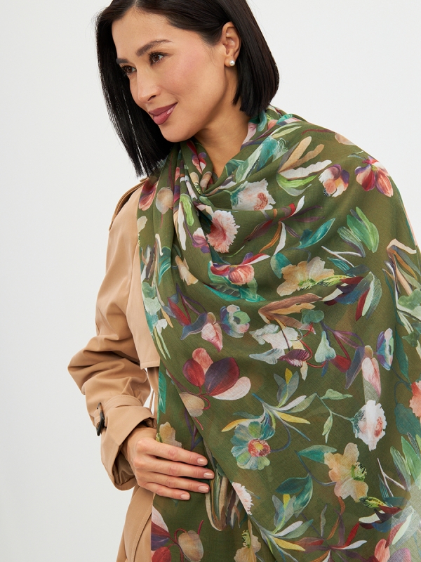 Большой, мягкий, тонкий и очень нежный палантин с рисунком. Края изделия украшены бахромой ручной работы. Машинная деликатная стирка.