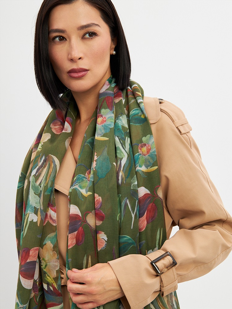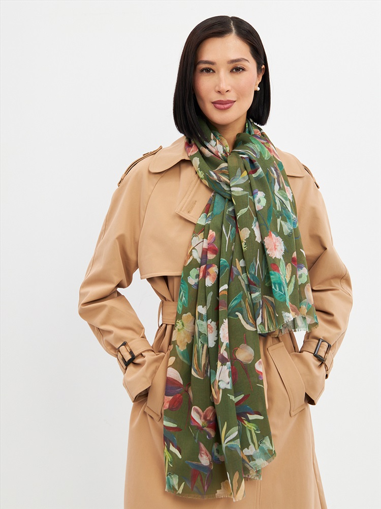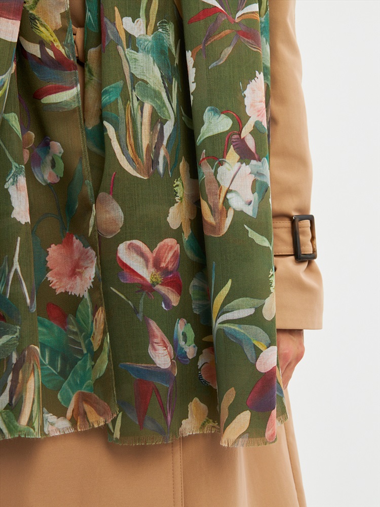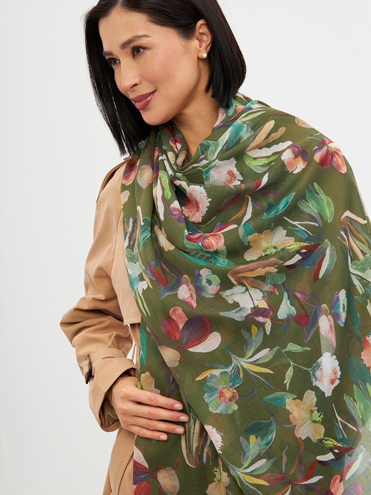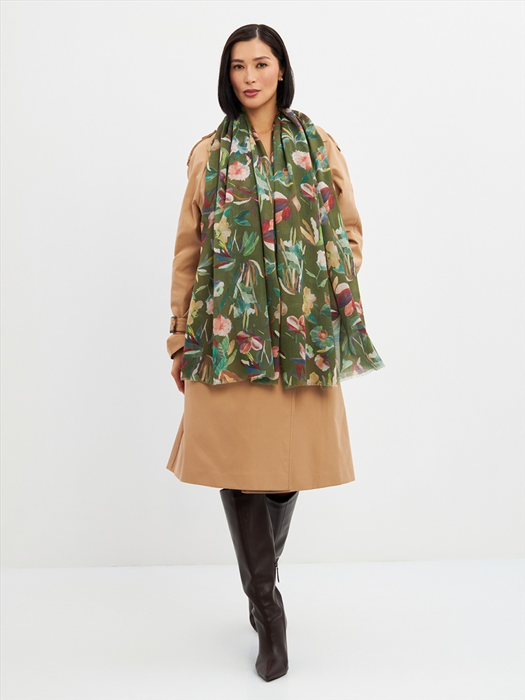 Большой, мягкий, тонкий и очень нежный палантин с рисунком. Края изделия украшены бахромой ручной работы. Машинная деликатная стирка.
