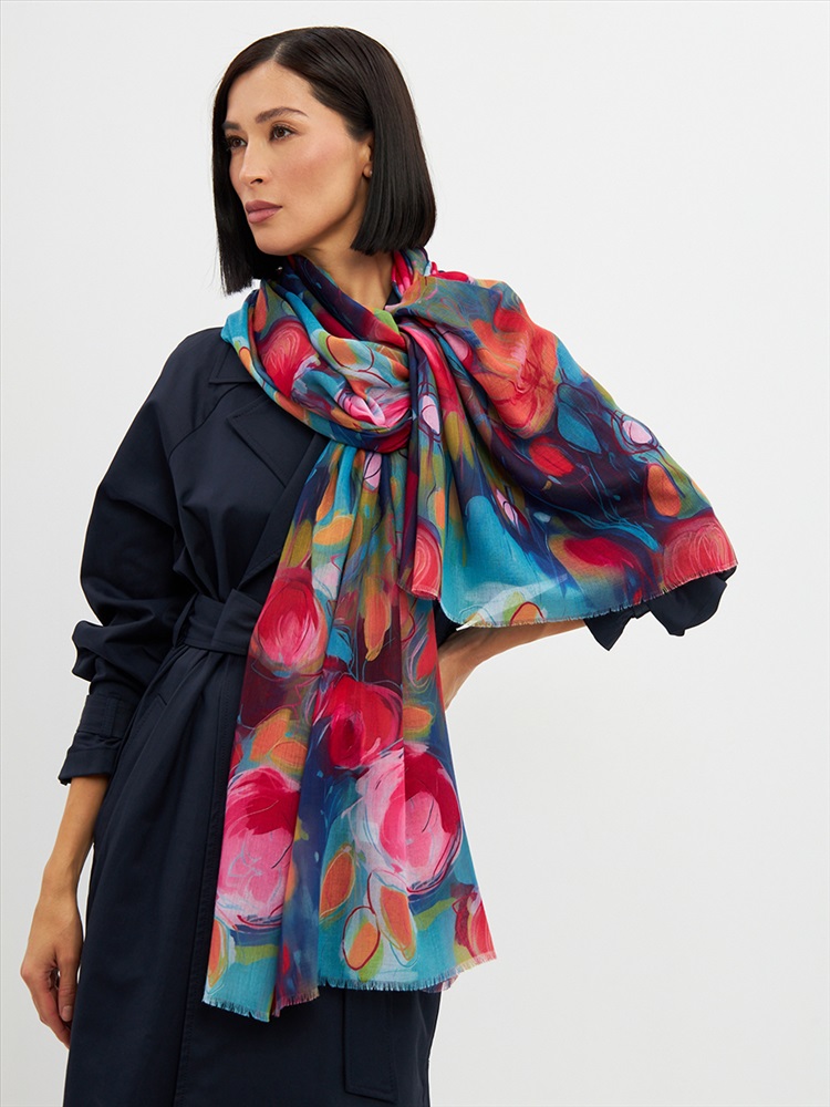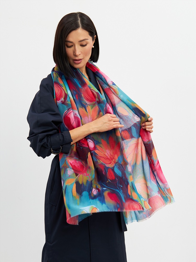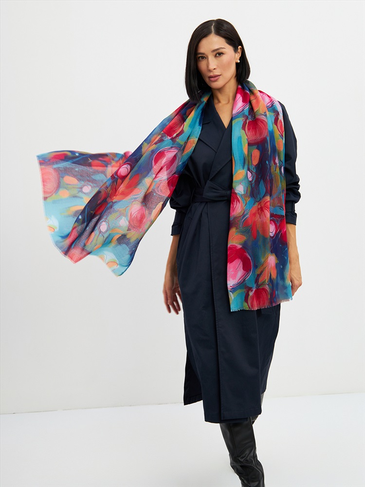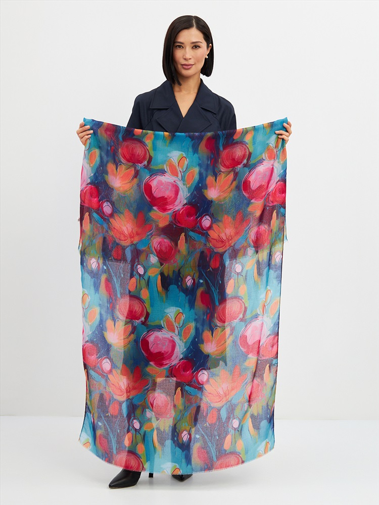 Цвет: Голубой, Красный, Малиновый, Синий Размер: 80 x 180 см Состав: 55% полиэстер, 35% вискоза, 10% шелк Состав: Вискоза, Полиэстер, Шелк Принт: Цветочный Большой, мягкий, тонкий и очень нежный палантин с рисунком. Края изделия украшены бахромой ручной работы. Машинная деликатная стирка. Комментарии к товару
