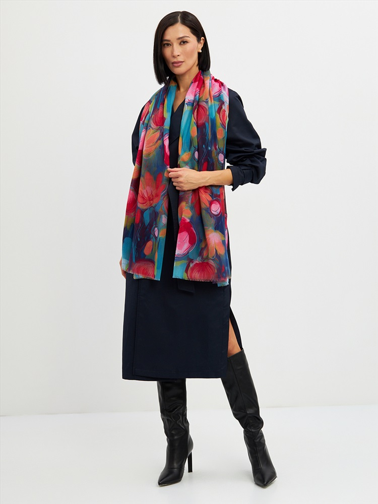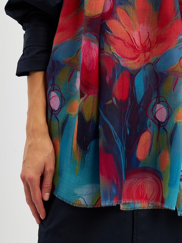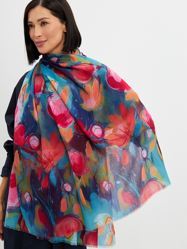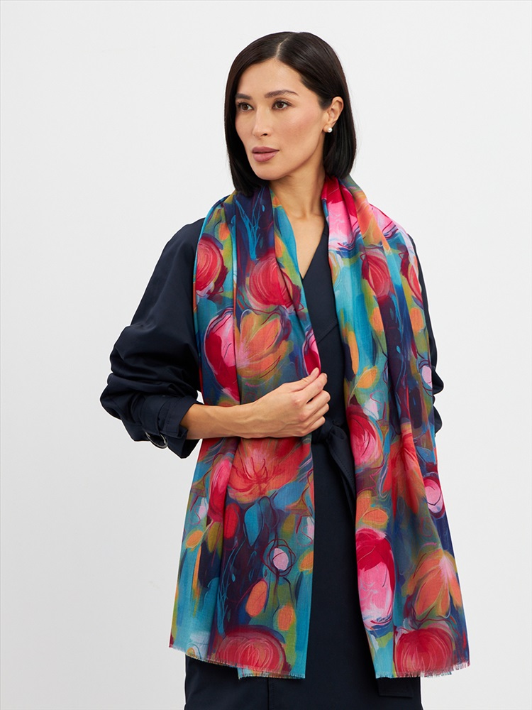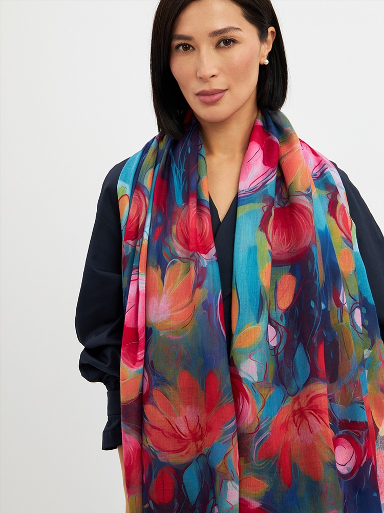 Цвет: Голубой, Красный, Малиновый, Синий Размер: 80 x 180 см Состав: 55% полиэстер, 35% вискоза, 10% шелк Состав: Вискоза, Полиэстер, Шелк Принт: Цветочный Большой, мягкий, тонкий и очень нежный палантин с рисунком. Края изделия украшены бахромой ручной работы. Машинная деликатная стирка. Комментарии к товару