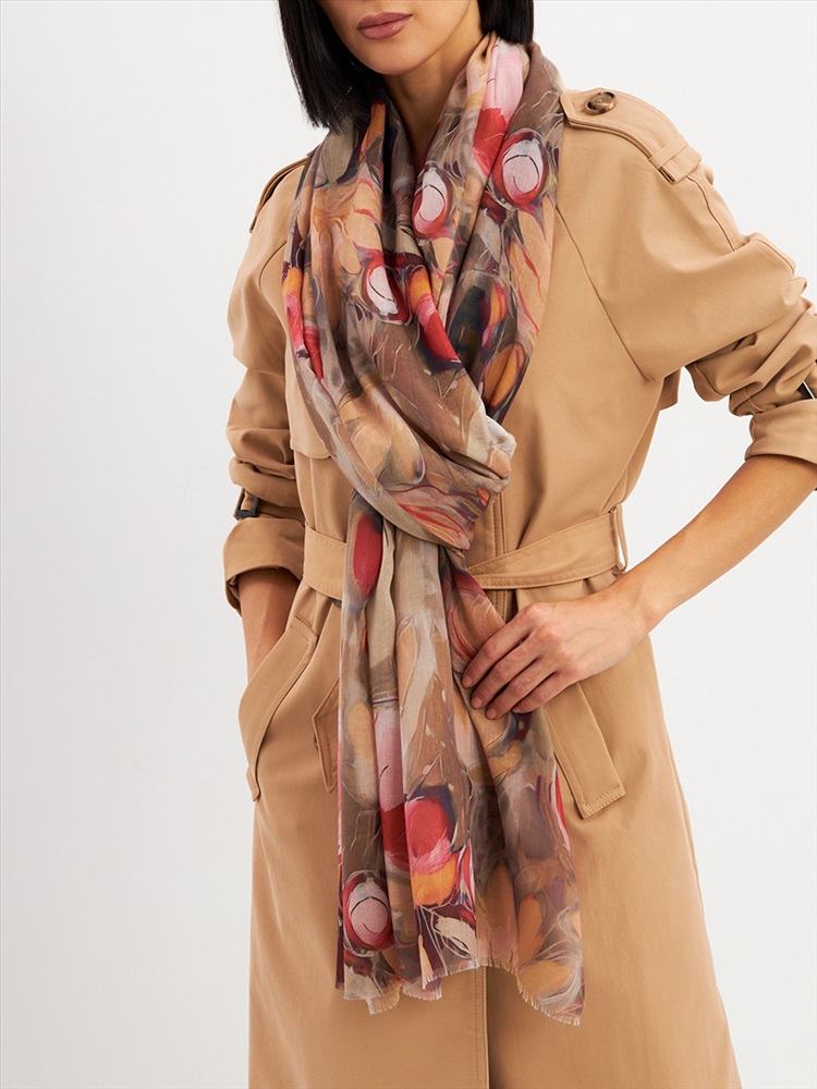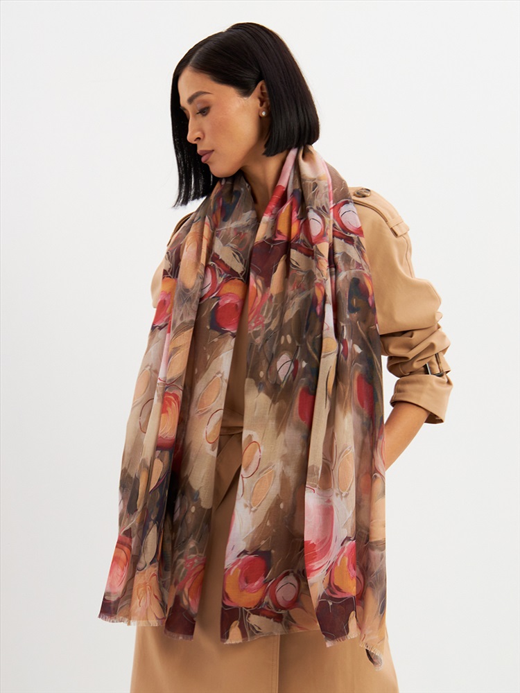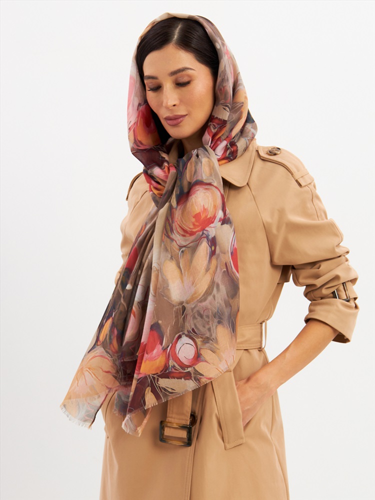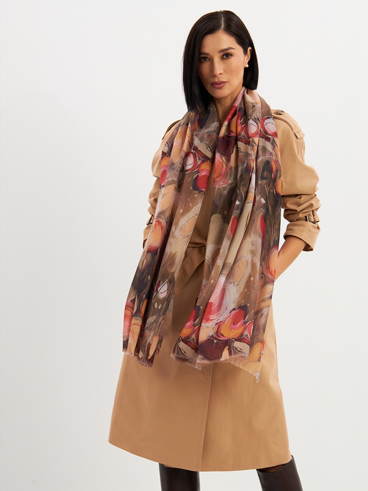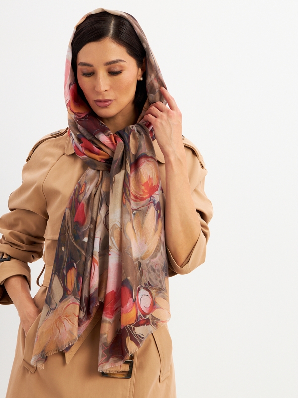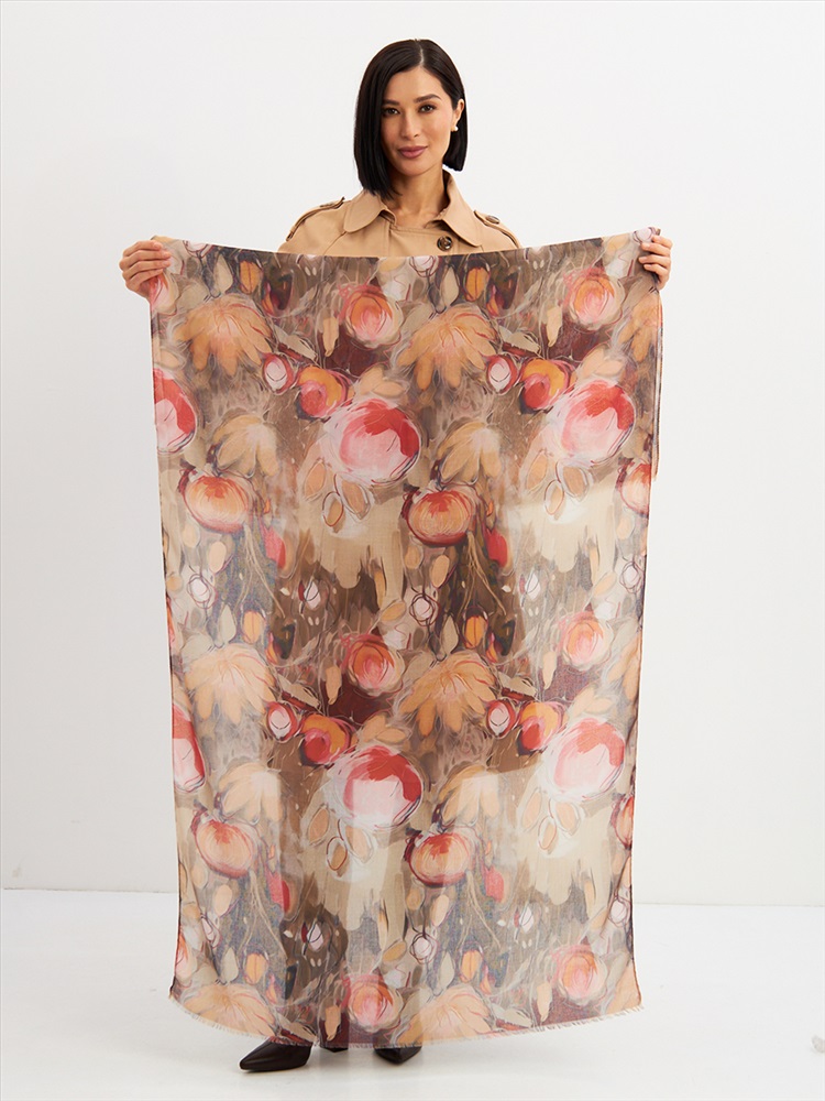 Большой, мягкий, тонкий и очень нежный палантин с рисунком. Края изделия украшены бахромой ручной работы. Машинная деликатная стирка.
