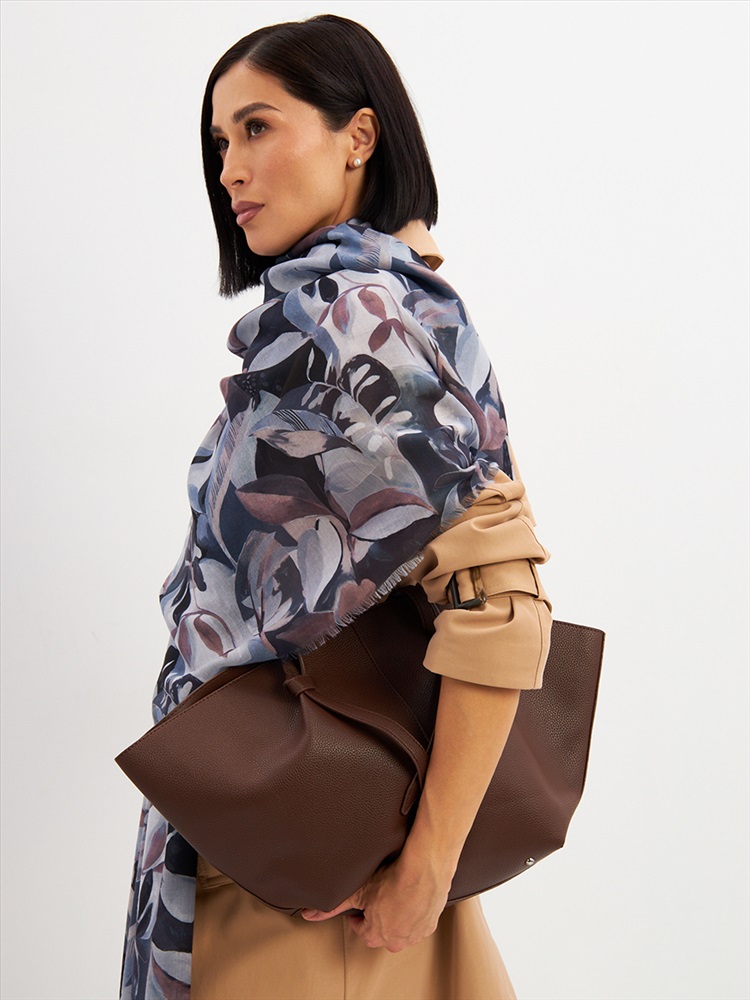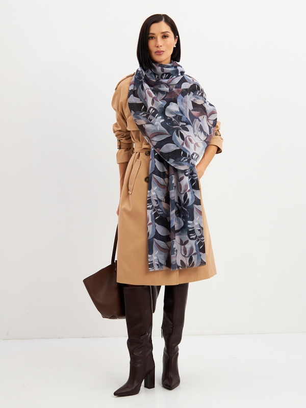 Большой, мягкий, тонкий и очень нежный палантин с рисунком. Края изделия украшены бахромой ручной работы. Машинная деликатная стирка.