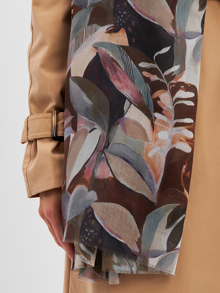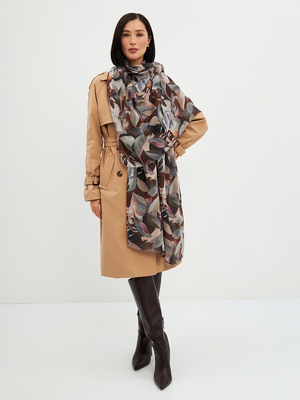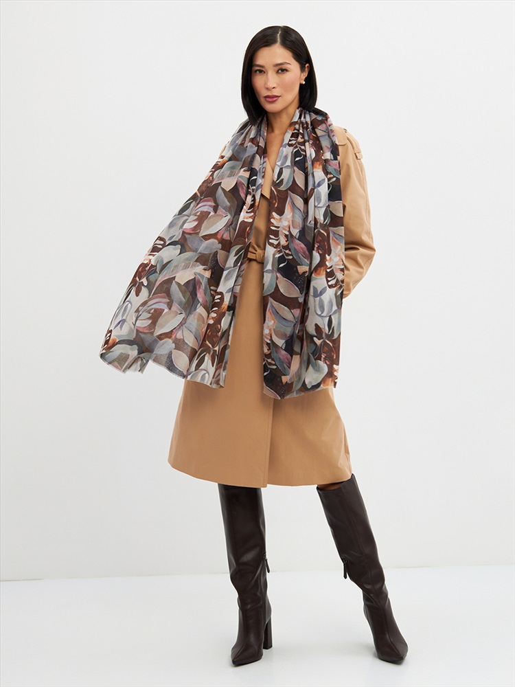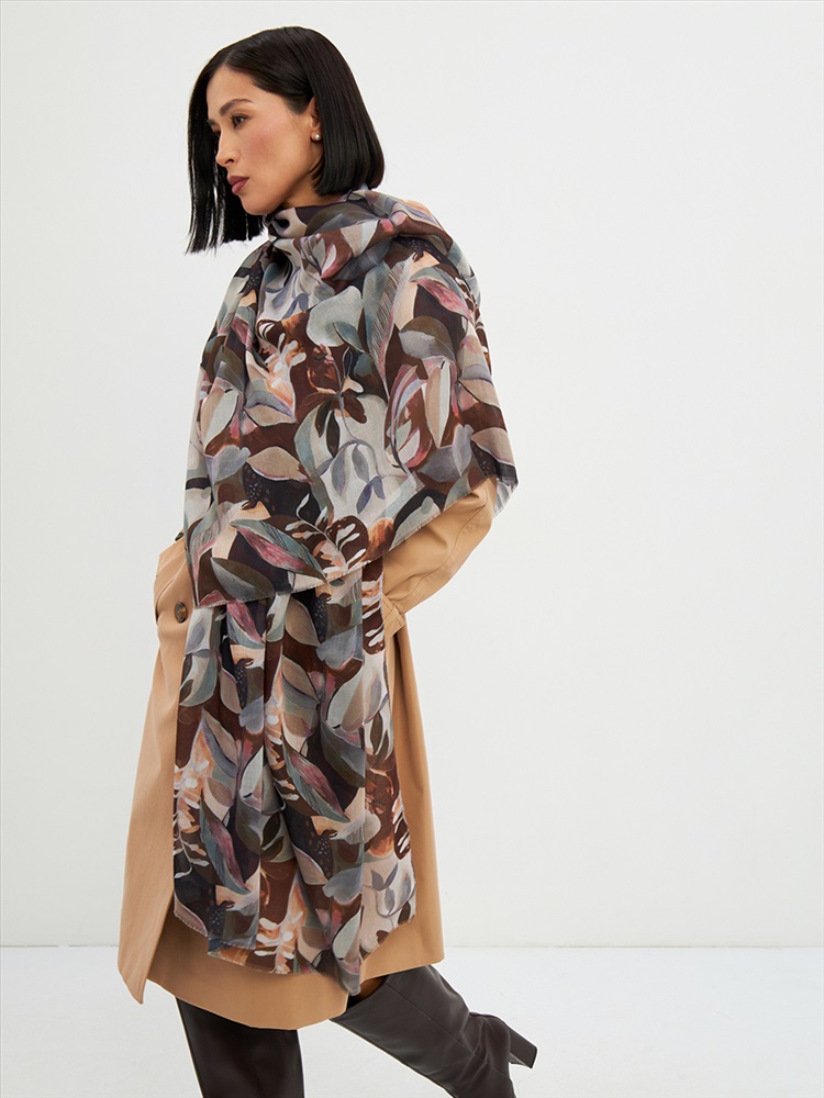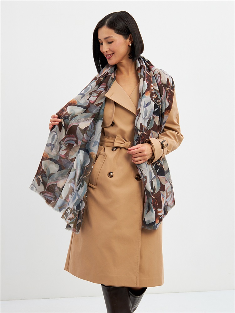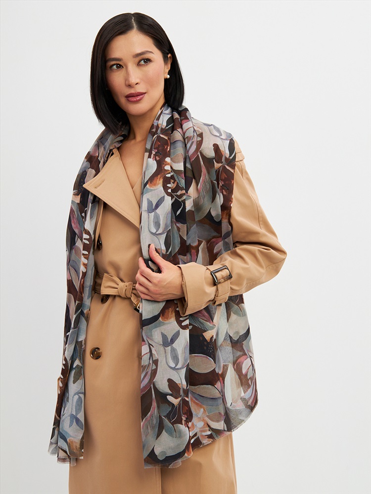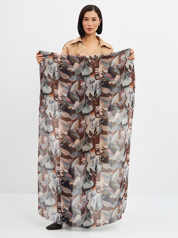 Большой, мягкий, тонкий и очень нежный палантин с рисунком. Края изделия украшены бахромой ручной работы. Машинная деликатная стирка.