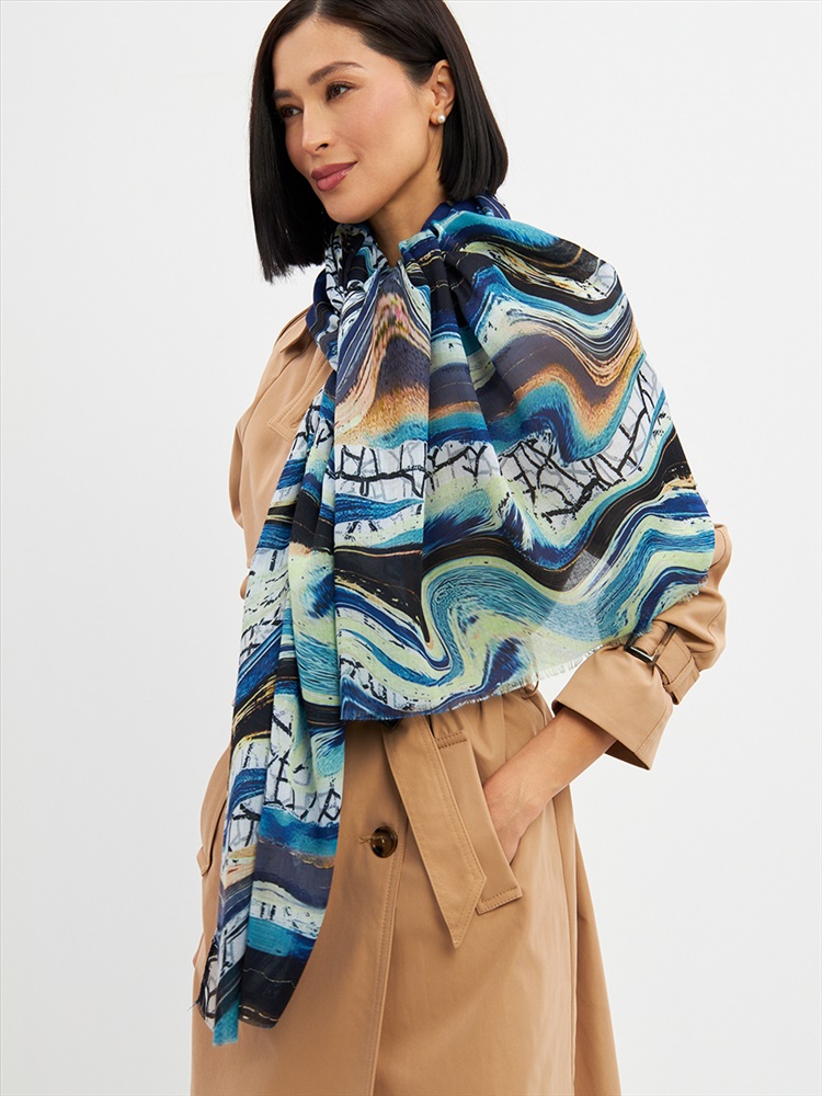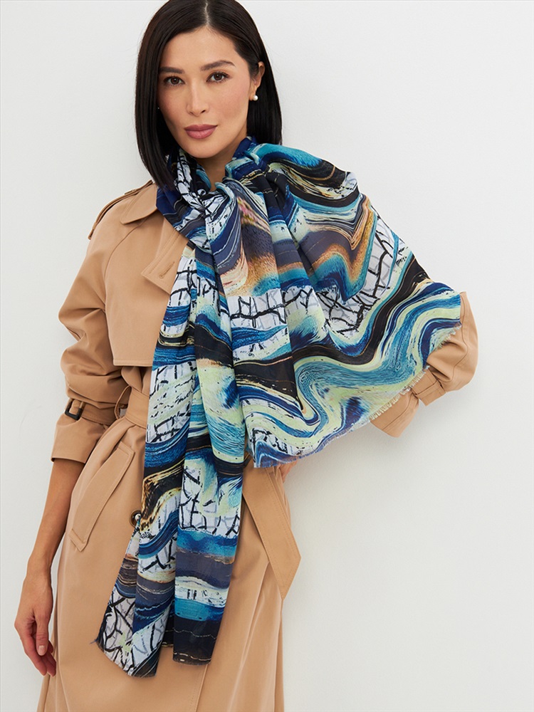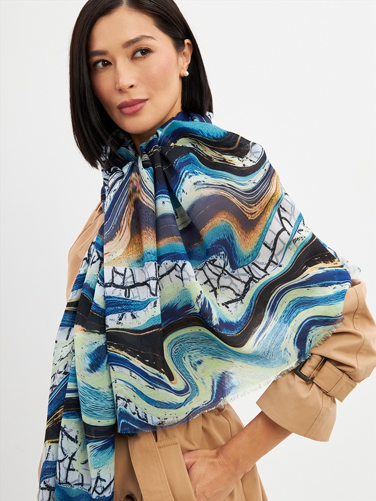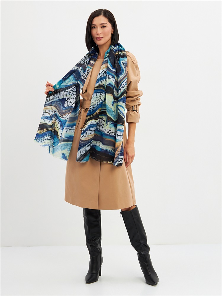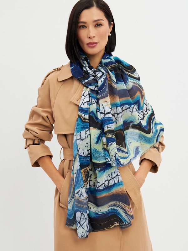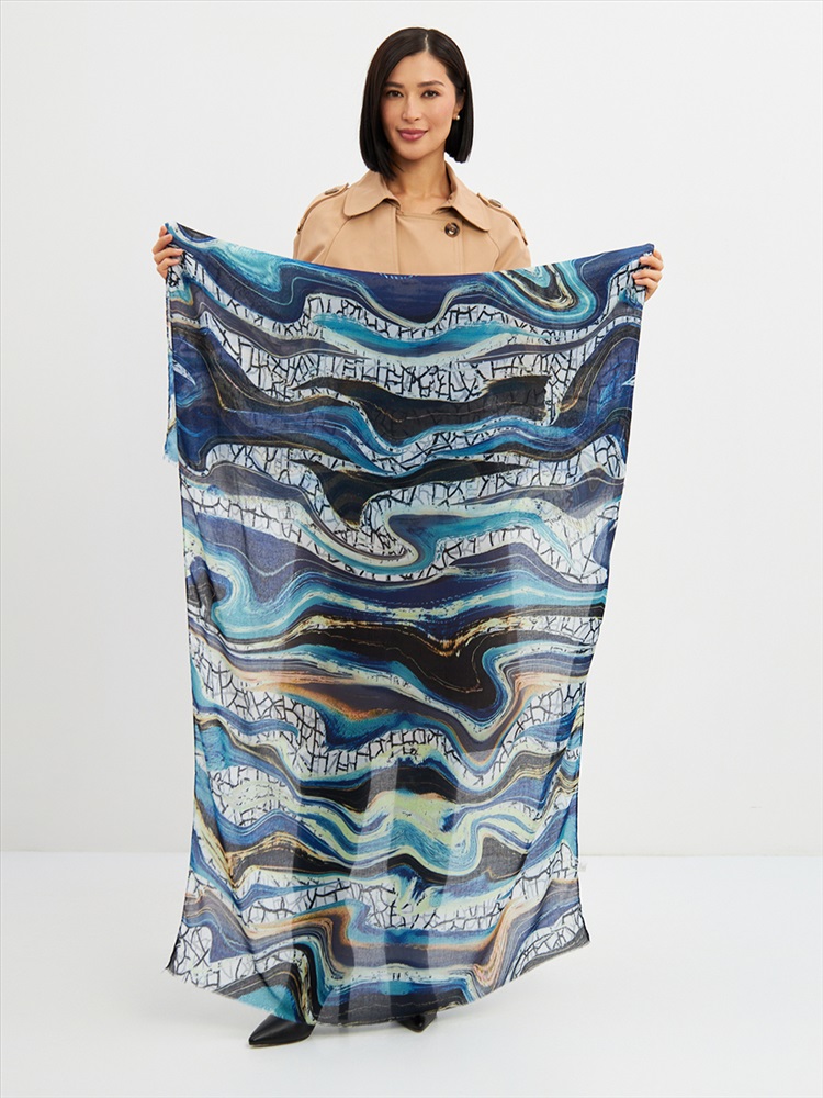 Большой, мягкий, тонкий и очень нежный палантин с рисунком. Края изделия украшены бахромой ручной работы. Машинная деликатная стирка.
